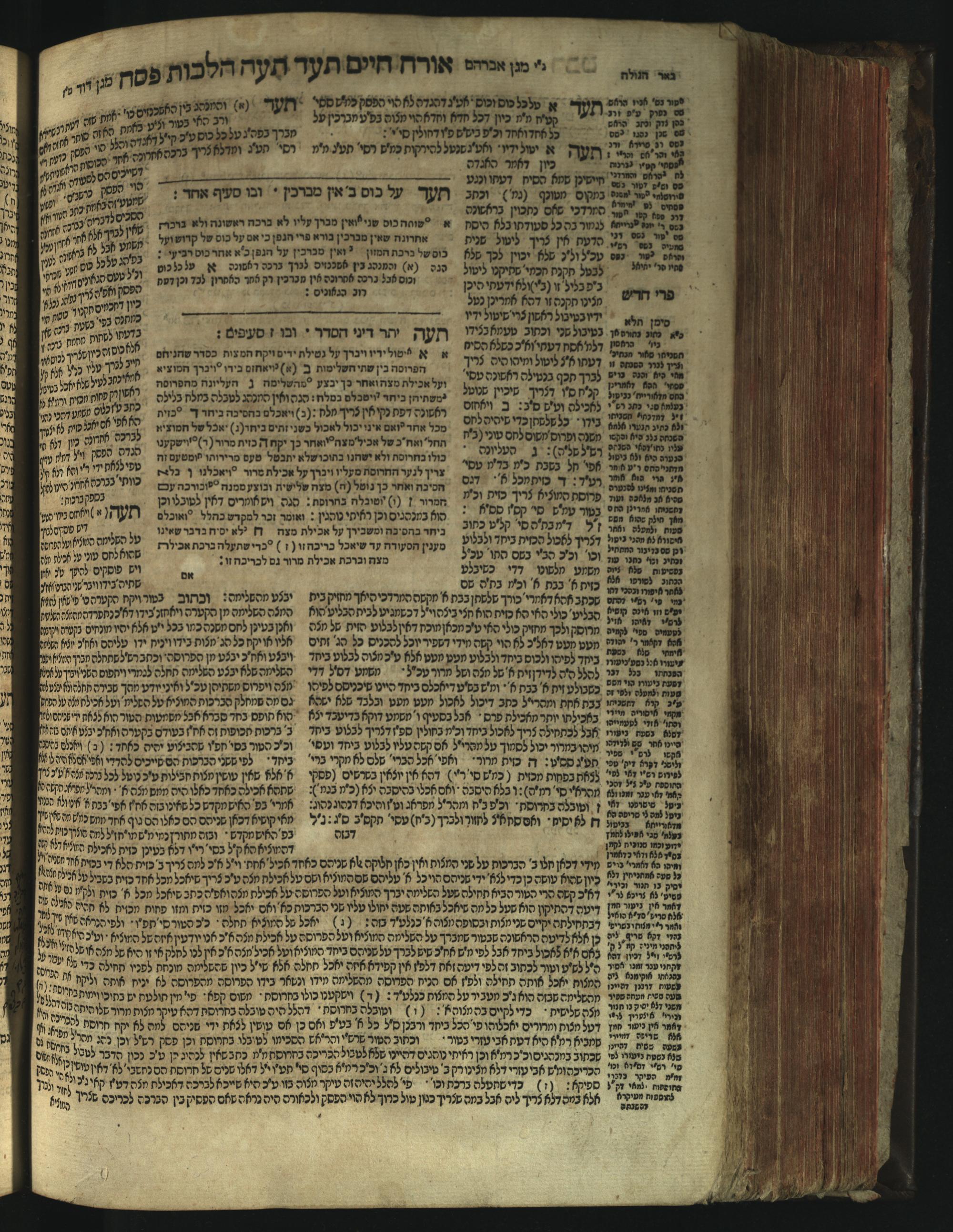 Sefer Magine erets : ... ʿal ha-Shulḥan ʿarukh ... Oraḥ ḥayim ... / ... ha-lo hemah ha-meʾorot ha-gedolim ... ha-shem ha-eḥad Magen Daṿid h.h. ha-gaʾon ... Daṿid ... baʿal ha-meḥaber sefer Ṭure zahav ṿe-shem ha-sheni Magen Avraham h.h. ... Avraham Segal Gumbiner z.l. dayan di-ḳ.ḳ. Ḳalish ... ṿe-ʿavar ʿalehem ʿAṭeret zeḳenim ... Mendel ... she-hirbits torato be-ḳ.ḳ. Ḳroṭoshin ben ha-katsin ... Zalman Fish Hoif mi-ḳ.ḳ. Ṿina: ... ha-ʿamadnu be-tsedo Beʾer ha-golah ... ṿe-hosafnu be-zeh ha-sefer ... Peri ḥadash ʿim ha-liḳuṭim ....ספר מגיני ארץ : ... על השלחן ערוך ... אורח חיים ... / ... הלא המה המאורות הגדולים ... השם האחד מגן דוד ... ה״ה הגאון ... דוד ... בעל המחבר ספר טורי זהב ושם השני מגן אברהם ה״ה ... אברהם סג״ל גומבינר ... דיין דק״ק קאליש ...ועבר עליהם עטרת זקנים ... מענדל ... שהרביץ תורתו בק״ק קראטשין בן הקצין ... זלמן פיש הויף מק״ק ווינא: העמדנו בצדו באר הגולה ... והוספנו בזה הספר ... פרי חדש עם הלקוטים ...
