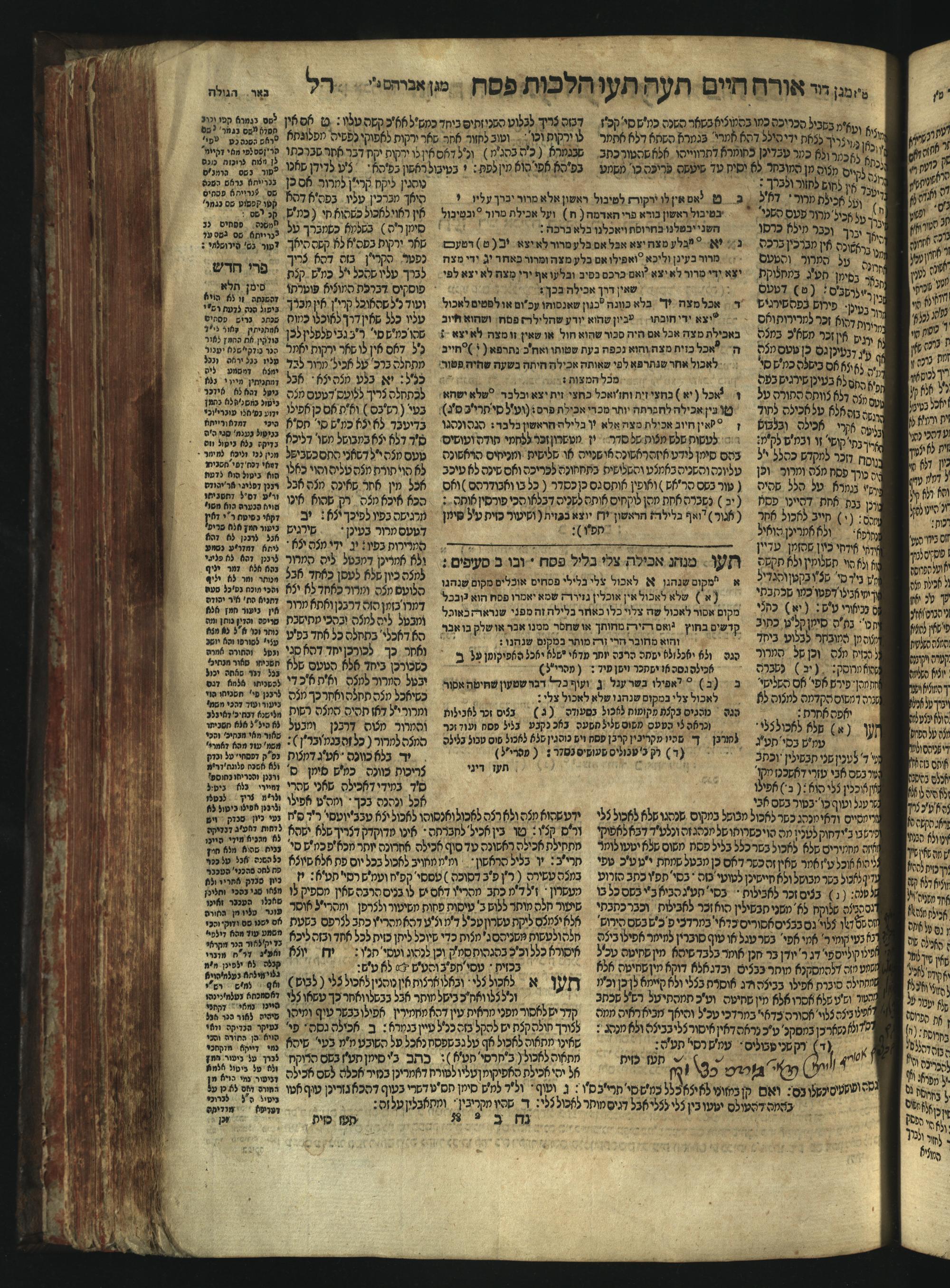 Sefer Magine erets : ... ʿal ha-Shulḥan ʿarukh ... Oraḥ ḥayim ... / ... ha-lo hemah ha-meʾorot ha-gedolim ... ha-shem ha-eḥad Magen Daṿid h.h. ha-gaʾon ... Daṿid ... baʿal ha-meḥaber sefer Ṭure zahav ṿe-shem ha-sheni Magen Avraham h.h. ... Avraham Segal Gumbiner z.l. dayan di-ḳ.ḳ. Ḳalish ... ṿe-ʿavar ʿalehem ʿAṭeret zeḳenim ... Mendel ... she-hirbits torato be-ḳ.ḳ. Ḳroṭoshin ben ha-katsin ... Zalman Fish Hoif mi-ḳ.ḳ. Ṿina: ... ha-ʿamadnu be-tsedo Beʾer ha-golah ... ṿe-hosafnu be-zeh ha-sefer ... Peri ḥadash ʿim ha-liḳuṭim ....ספר מגיני ארץ : ... על השלחן ערוך ... אורח חיים ... / ... הלא המה המאורות הגדולים ... השם האחד מגן דוד ... ה״ה הגאון ... דוד ... בעל המחבר ספר טורי זהב ושם השני מגן אברהם ה״ה ... אברהם סג״ל גומבינר ... דיין דק״ק קאליש ...ועבר עליהם עטרת זקנים ... מענדל ... שהרביץ תורתו בק״ק קראטשין בן הקצין ... זלמן פיש הויף מק״ק ווינא: העמדנו בצדו באר הגולה ... והוספנו בזה הספר ... פרי חדש עם הלקוטים ...