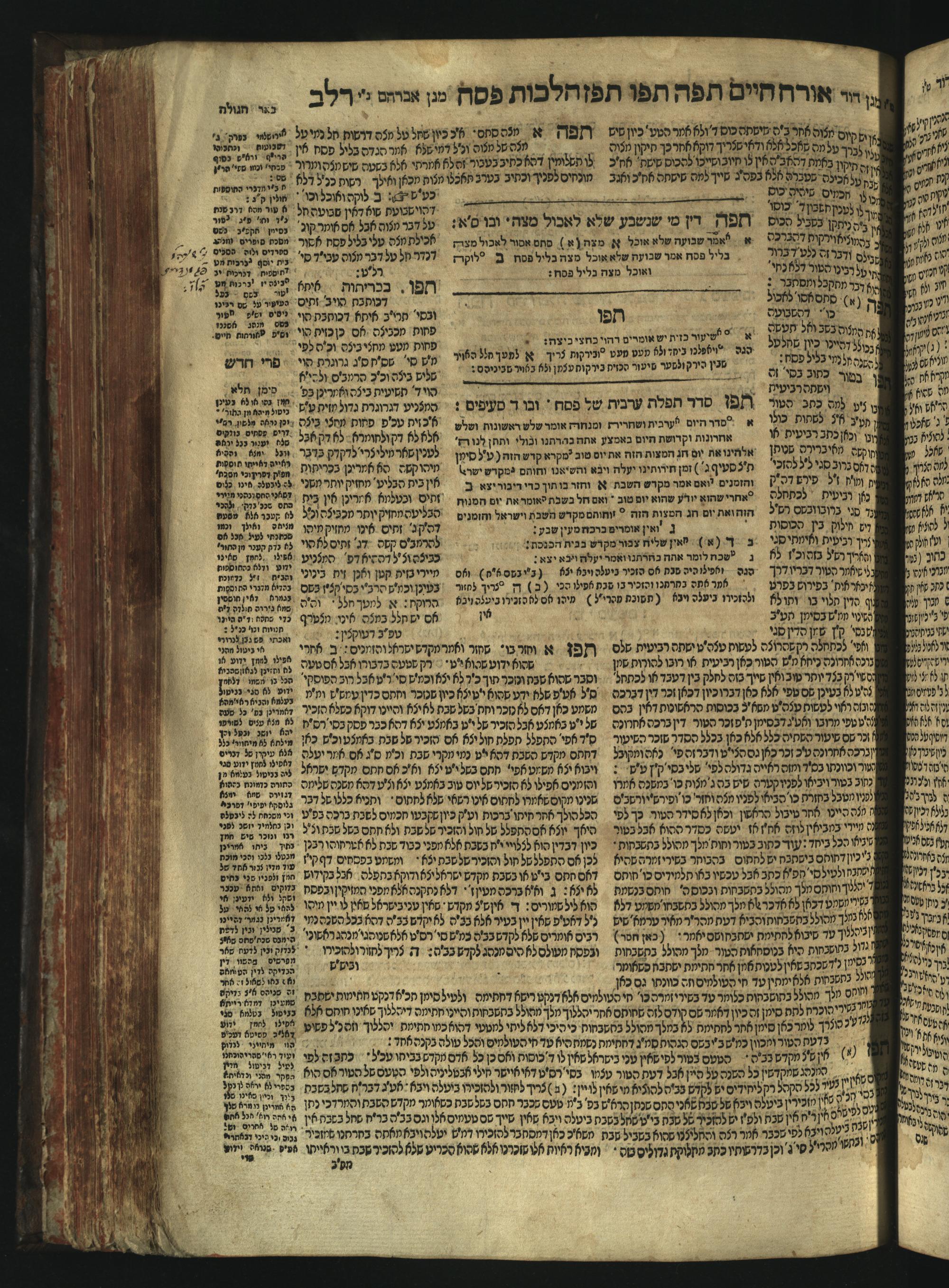 Sefer Magine erets : ... ʿal ha-Shulḥan ʿarukh ... Oraḥ ḥayim ... / ... ha-lo hemah ha-meʾorot ha-gedolim ... ha-shem ha-eḥad Magen Daṿid h.h. ha-gaʾon ... Daṿid ... baʿal ha-meḥaber sefer Ṭure zahav ṿe-shem ha-sheni Magen Avraham h.h. ... Avraham Segal Gumbiner z.l. dayan di-ḳ.ḳ. Ḳalish ... ṿe-ʿavar ʿalehem ʿAṭeret zeḳenim ... Mendel ... she-hirbits torato be-ḳ.ḳ. Ḳroṭoshin ben ha-katsin ... Zalman Fish Hoif mi-ḳ.ḳ. Ṿina: ... ha-ʿamadnu be-tsedo Beʾer ha-golah ... ṿe-hosafnu be-zeh ha-sefer ... Peri ḥadash ʿim ha-liḳuṭim ....ספר מגיני ארץ : ... על השלחן ערוך ... אורח חיים ... / ... הלא המה המאורות הגדולים ... השם האחד מגן דוד ... ה״ה הגאון ... דוד ... בעל המחבר ספר טורי זהב ושם השני מגן אברהם ה״ה ... אברהם סג״ל גומבינר ... דיין דק״ק קאליש ...ועבר עליהם עטרת זקנים ... מענדל ... שהרביץ תורתו בק״ק קראטשין בן הקצין ... זלמן פיש הויף מק״ק ווינא: העמדנו בצדו באר הגולה ... והוספנו בזה הספר ... פרי חדש עם הלקוטים ...