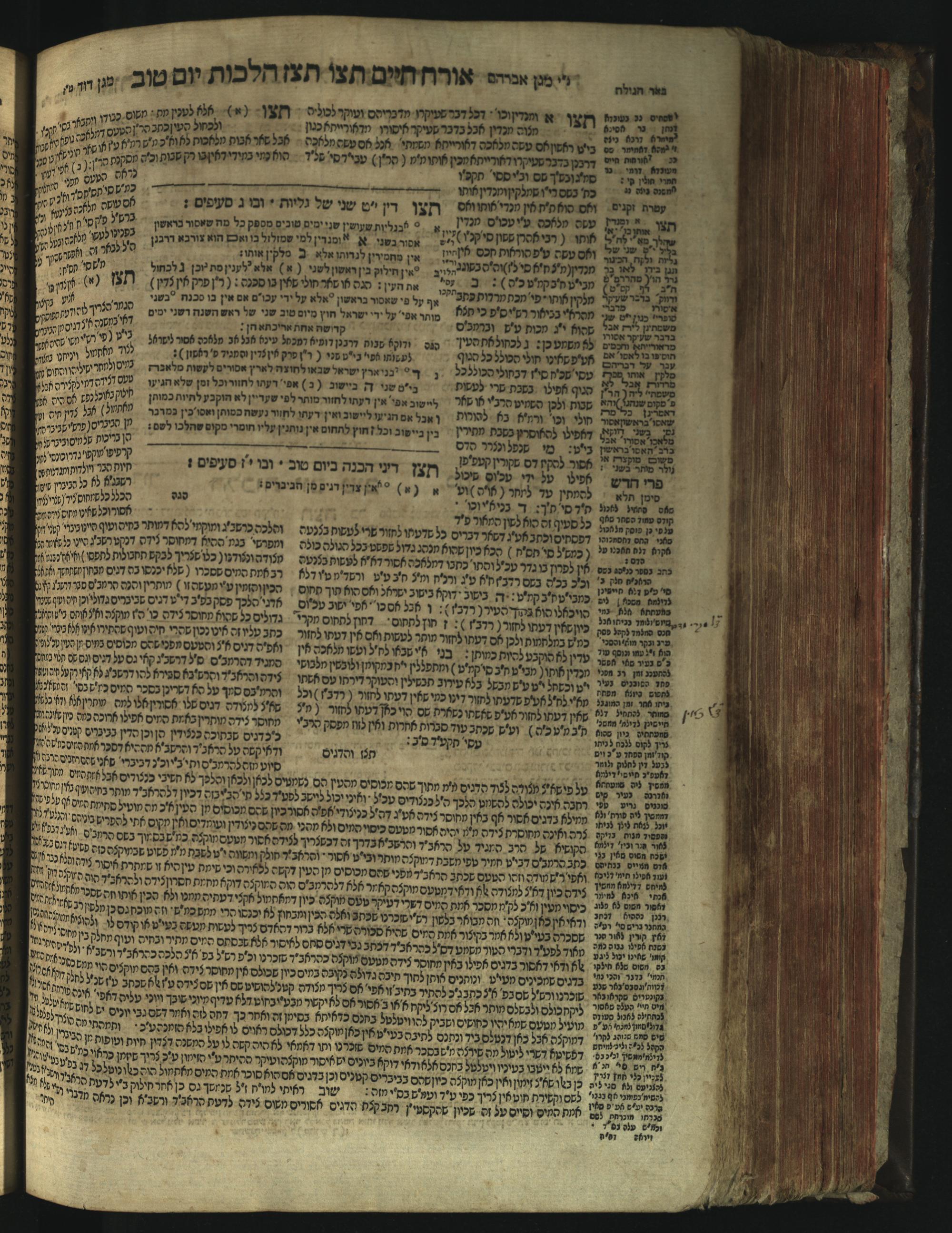 Sefer Magine erets : ... ʿal ha-Shulḥan ʿarukh ... Oraḥ ḥayim ... / ... ha-lo hemah ha-meʾorot ha-gedolim ... ha-shem ha-eḥad Magen Daṿid h.h. ha-gaʾon ... Daṿid ... baʿal ha-meḥaber sefer Ṭure zahav ṿe-shem ha-sheni Magen Avraham h.h. ... Avraham Segal Gumbiner z.l. dayan di-ḳ.ḳ. Ḳalish ... ṿe-ʿavar ʿalehem ʿAṭeret zeḳenim ... Mendel ... she-hirbits torato be-ḳ.ḳ. Ḳroṭoshin ben ha-katsin ... Zalman Fish Hoif mi-ḳ.ḳ. Ṿina: ... ha-ʿamadnu be-tsedo Beʾer ha-golah ... ṿe-hosafnu be-zeh ha-sefer ... Peri ḥadash ʿim ha-liḳuṭim ....ספר מגיני ארץ : ... על השלחן ערוך ... אורח חיים ... / ... הלא המה המאורות הגדולים ... השם האחד מגן דוד ... ה״ה הגאון ... דוד ... בעל המחבר ספר טורי זהב ושם השני מגן אברהם ה״ה ... אברהם סג״ל גומבינר ... דיין דק״ק קאליש ...ועבר עליהם עטרת זקנים ... מענדל ... שהרביץ תורתו בק״ק קראטשין בן הקצין ... זלמן פיש הויף מק״ק ווינא: העמדנו בצדו באר הגולה ... והוספנו בזה הספר ... פרי חדש עם הלקוטים ...