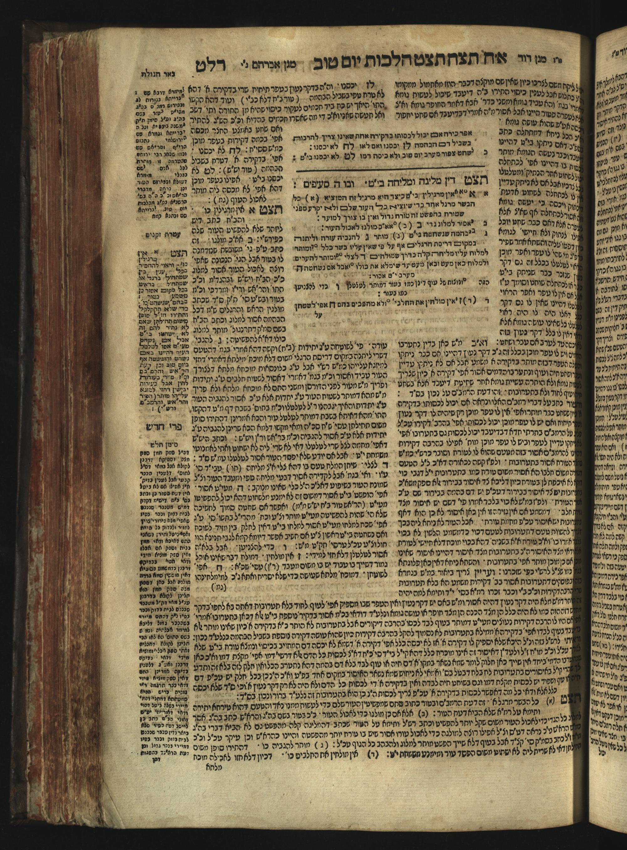 Sefer Magine erets : ... ʿal ha-Shulḥan ʿarukh ... Oraḥ ḥayim ... / ... ha-lo hemah ha-meʾorot ha-gedolim ... ha-shem ha-eḥad Magen Daṿid h.h. ha-gaʾon ... Daṿid ... baʿal ha-meḥaber sefer Ṭure zahav ṿe-shem ha-sheni Magen Avraham h.h. ... Avraham Segal Gumbiner z.l. dayan di-ḳ.ḳ. Ḳalish ... ṿe-ʿavar ʿalehem ʿAṭeret zeḳenim ... Mendel ... she-hirbits torato be-ḳ.ḳ. Ḳroṭoshin ben ha-katsin ... Zalman Fish Hoif mi-ḳ.ḳ. Ṿina: ... ha-ʿamadnu be-tsedo Beʾer ha-golah ... ṿe-hosafnu be-zeh ha-sefer ... Peri ḥadash ʿim ha-liḳuṭim ....ספר מגיני ארץ : ... על השלחן ערוך ... אורח חיים ... / ... הלא המה המאורות הגדולים ... השם האחד מגן דוד ... ה״ה הגאון ... דוד ... בעל המחבר ספר טורי זהב ושם השני מגן אברהם ה״ה ... אברהם סג״ל גומבינר ... דיין דק״ק קאליש ...ועבר עליהם עטרת זקנים ... מענדל ... שהרביץ תורתו בק״ק קראטשין בן הקצין ... זלמן פיש הויף מק״ק ווינא: העמדנו בצדו באר הגולה ... והוספנו בזה הספר ... פרי חדש עם הלקוטים ...