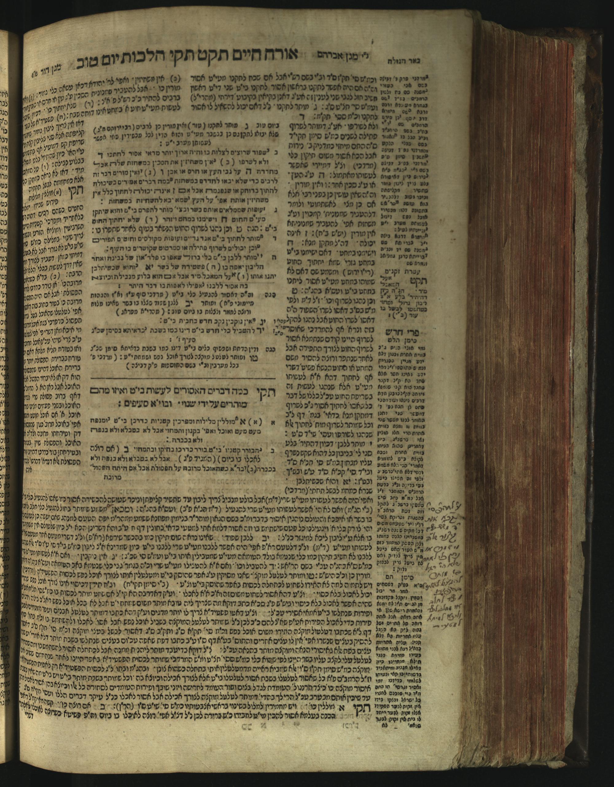 Sefer Magine erets : ... ʿal ha-Shulḥan ʿarukh ... Oraḥ ḥayim ... / ... ha-lo hemah ha-meʾorot ha-gedolim ... ha-shem ha-eḥad Magen Daṿid h.h. ha-gaʾon ... Daṿid ... baʿal ha-meḥaber sefer Ṭure zahav ṿe-shem ha-sheni Magen Avraham h.h. ... Avraham Segal Gumbiner z.l. dayan di-ḳ.ḳ. Ḳalish ... ṿe-ʿavar ʿalehem ʿAṭeret zeḳenim ... Mendel ... she-hirbits torato be-ḳ.ḳ. Ḳroṭoshin ben ha-katsin ... Zalman Fish Hoif mi-ḳ.ḳ. Ṿina: ... ha-ʿamadnu be-tsedo Beʾer ha-golah ... ṿe-hosafnu be-zeh ha-sefer ... Peri ḥadash ʿim ha-liḳuṭim ....ספר מגיני ארץ : ... על השלחן ערוך ... אורח חיים ... / ... הלא המה המאורות הגדולים ... השם האחד מגן דוד ... ה״ה הגאון ... דוד ... בעל המחבר ספר טורי זהב ושם השני מגן אברהם ה״ה ... אברהם סג״ל גומבינר ... דיין דק״ק קאליש ...ועבר עליהם עטרת זקנים ... מענדל ... שהרביץ תורתו בק״ק קראטשין בן הקצין ... זלמן פיש הויף מק״ק ווינא: העמדנו בצדו באר הגולה ... והוספנו בזה הספר ... פרי חדש עם הלקוטים ...