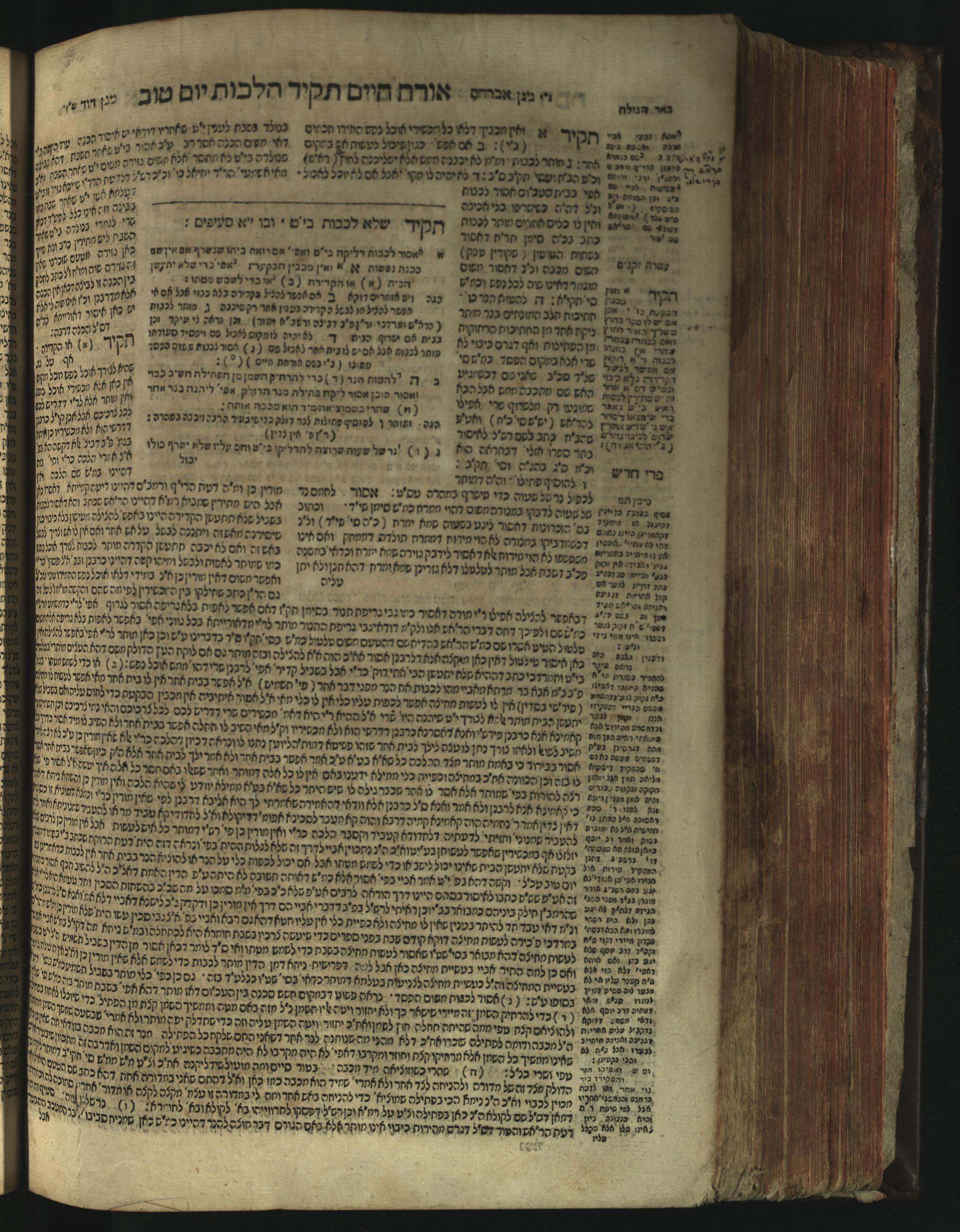 Sefer Magine erets : ... ʿal ha-Shulḥan ʿarukh ... Oraḥ ḥayim ... / ... ha-lo hemah ha-meʾorot ha-gedolim ... ha-shem ha-eḥad Magen Daṿid h.h. ha-gaʾon ... Daṿid ... baʿal ha-meḥaber sefer Ṭure zahav ṿe-shem ha-sheni Magen Avraham h.h. ... Avraham Segal Gumbiner z.l. dayan di-ḳ.ḳ. Ḳalish ... ṿe-ʿavar ʿalehem ʿAṭeret zeḳenim ... Mendel ... she-hirbits torato be-ḳ.ḳ. Ḳroṭoshin ben ha-katsin ... Zalman Fish Hoif mi-ḳ.ḳ. Ṿina: ... ha-ʿamadnu be-tsedo Beʾer ha-golah ... ṿe-hosafnu be-zeh ha-sefer ... Peri ḥadash ʿim ha-liḳuṭim ....ספר מגיני ארץ : ... על השלחן ערוך ... אורח חיים ... / ... הלא המה המאורות הגדולים ... השם האחד מגן דוד ... ה״ה הגאון ... דוד ... בעל המחבר ספר טורי זהב ושם השני מגן אברהם ה״ה ... אברהם סג״ל גומבינר ... דיין דק״ק קאליש ...ועבר עליהם עטרת זקנים ... מענדל ... שהרביץ תורתו בק״ק קראטשין בן הקצין ... זלמן פיש הויף מק״ק ווינא: העמדנו בצדו באר הגולה ... והוספנו בזה הספר ... פרי חדש עם הלקוטים ...