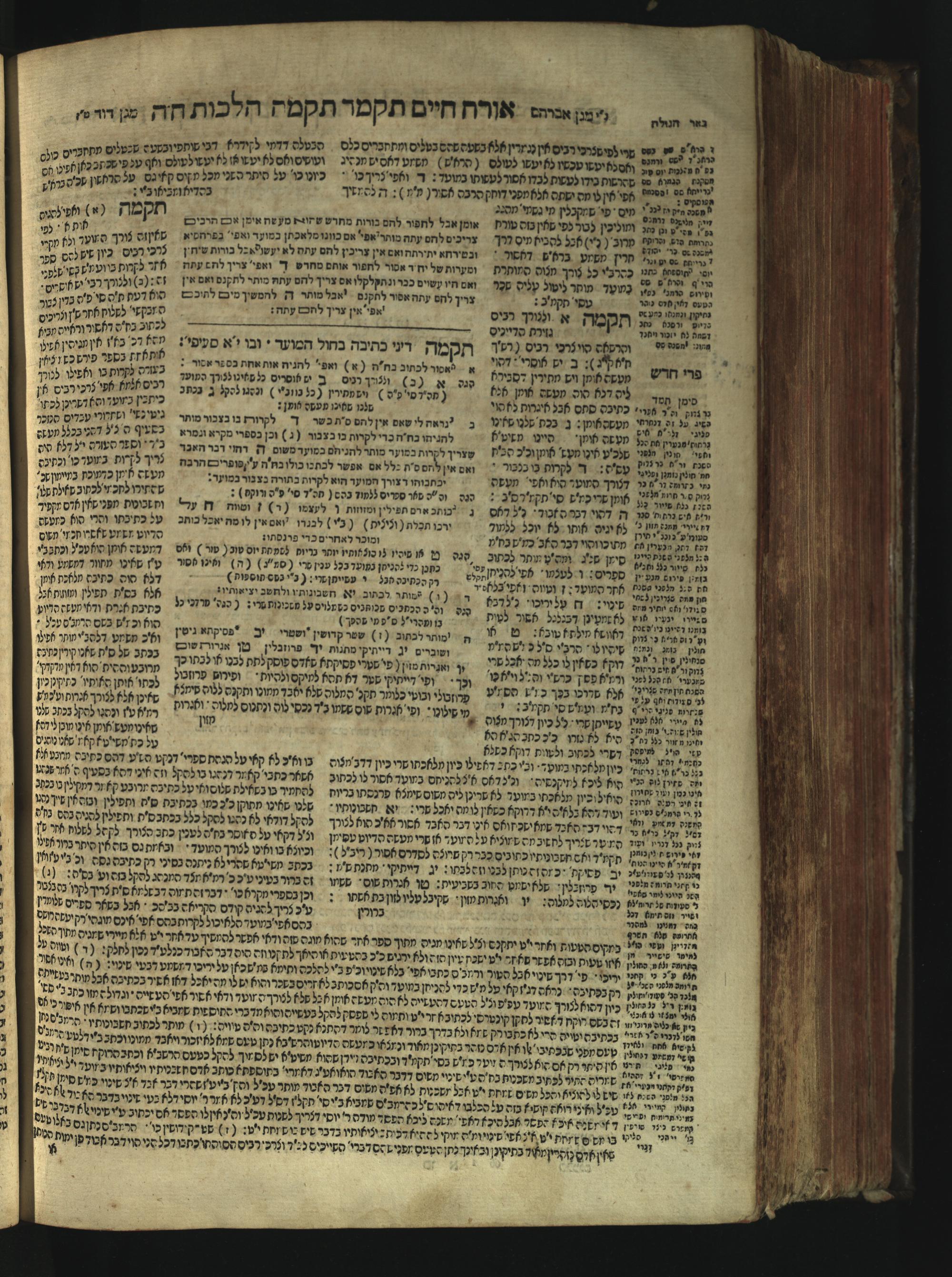 Sefer Magine erets : ... ʿal ha-Shulḥan ʿarukh ... Oraḥ ḥayim ... / ... ha-lo hemah ha-meʾorot ha-gedolim ... ha-shem ha-eḥad Magen Daṿid h.h. ha-gaʾon ... Daṿid ... baʿal ha-meḥaber sefer Ṭure zahav ṿe-shem ha-sheni Magen Avraham h.h. ... Avraham Segal Gumbiner z.l. dayan di-ḳ.ḳ. Ḳalish ... ṿe-ʿavar ʿalehem ʿAṭeret zeḳenim ... Mendel ... she-hirbits torato be-ḳ.ḳ. Ḳroṭoshin ben ha-katsin ... Zalman Fish Hoif mi-ḳ.ḳ. Ṿina: ... ha-ʿamadnu be-tsedo Beʾer ha-golah ... ṿe-hosafnu be-zeh ha-sefer ... Peri ḥadash ʿim ha-liḳuṭim ....ספר מגיני ארץ : ... על השלחן ערוך ... אורח חיים ... / ... הלא המה המאורות הגדולים ... השם האחד מגן דוד ... ה״ה הגאון ... דוד ... בעל המחבר ספר טורי זהב ושם השני מגן אברהם ה״ה ... אברהם סג״ל גומבינר ... דיין דק״ק קאליש ...ועבר עליהם עטרת זקנים ... מענדל ... שהרביץ תורתו בק״ק קראטשין בן הקצין ... זלמן פיש הויף מק״ק ווינא: העמדנו בצדו באר הגולה ... והוספנו בזה הספר ... פרי חדש עם הלקוטים ...