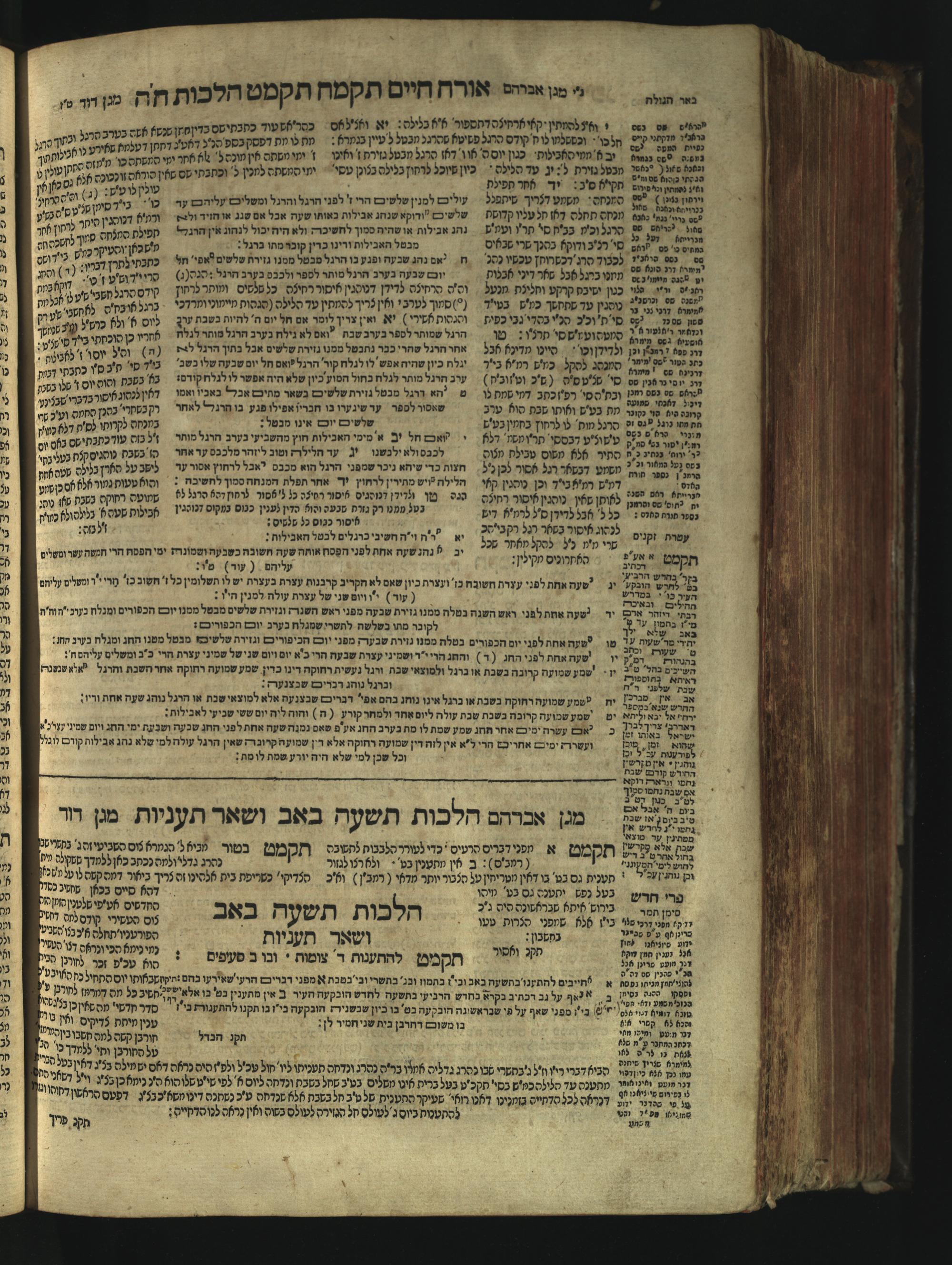 Sefer Magine erets : ... ʿal ha-Shulḥan ʿarukh ... Oraḥ ḥayim ... / ... ha-lo hemah ha-meʾorot ha-gedolim ... ha-shem ha-eḥad Magen Daṿid h.h. ha-gaʾon ... Daṿid ... baʿal ha-meḥaber sefer Ṭure zahav ṿe-shem ha-sheni Magen Avraham h.h. ... Avraham Segal Gumbiner z.l. dayan di-ḳ.ḳ. Ḳalish ... ṿe-ʿavar ʿalehem ʿAṭeret zeḳenim ... Mendel ... she-hirbits torato be-ḳ.ḳ. Ḳroṭoshin ben ha-katsin ... Zalman Fish Hoif mi-ḳ.ḳ. Ṿina: ... ha-ʿamadnu be-tsedo Beʾer ha-golah ... ṿe-hosafnu be-zeh ha-sefer ... Peri ḥadash ʿim ha-liḳuṭim ....ספר מגיני ארץ : ... על השלחן ערוך ... אורח חיים ... / ... הלא המה המאורות הגדולים ... השם האחד מגן דוד ... ה״ה הגאון ... דוד ... בעל המחבר ספר טורי זהב ושם השני מגן אברהם ה״ה ... אברהם סג״ל גומבינר ... דיין דק״ק קאליש ...ועבר עליהם עטרת זקנים ... מענדל ... שהרביץ תורתו בק״ק קראטשין בן הקצין ... זלמן פיש הויף מק״ק ווינא: העמדנו בצדו באר הגולה ... והוספנו בזה הספר ... פרי חדש עם הלקוטים ...