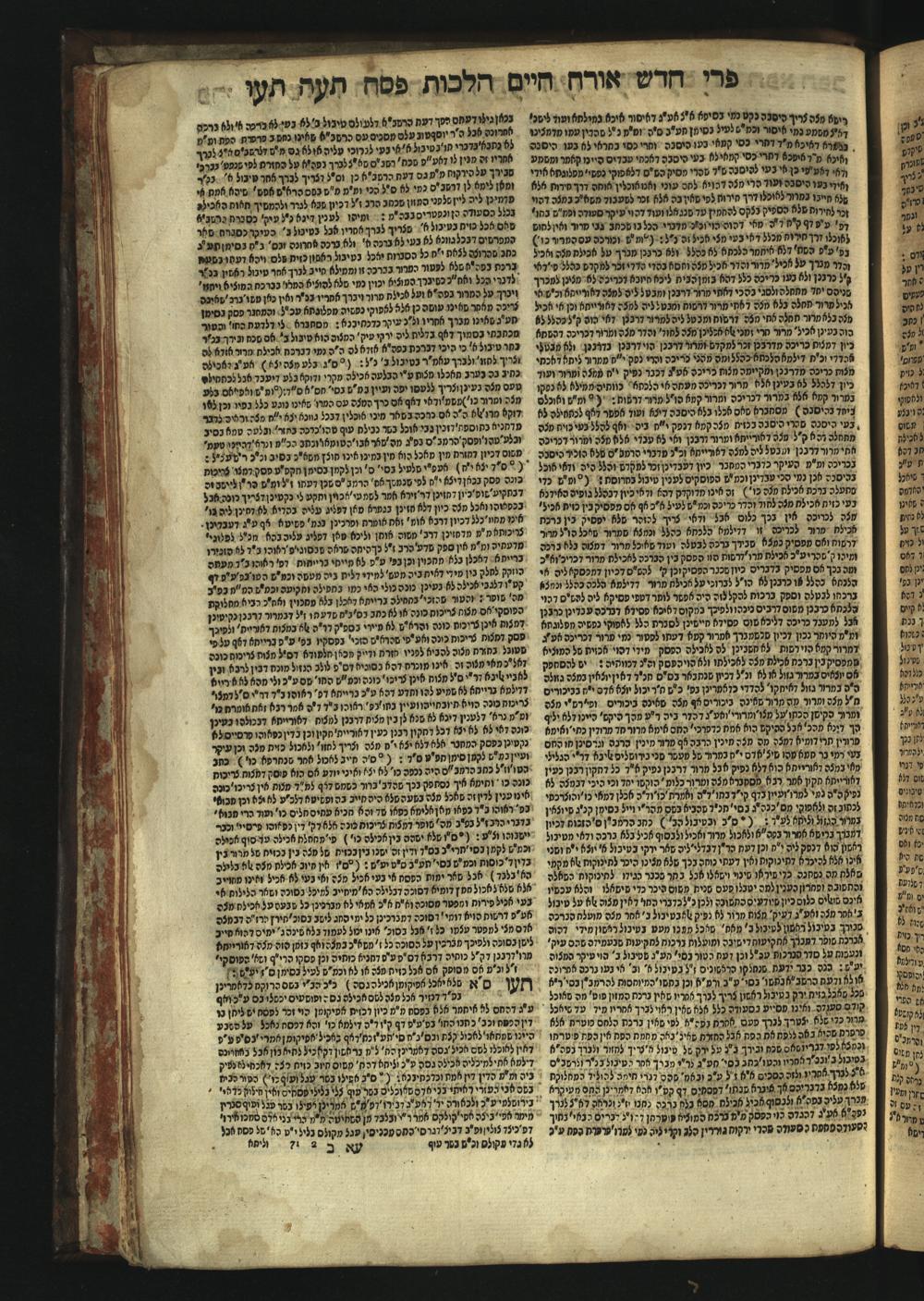 Sefer Magine erets : ... ʿal ha-Shulḥan ʿarukh ... Oraḥ ḥayim ... / ... ha-lo hemah ha-meʾorot ha-gedolim ... ha-shem ha-eḥad Magen Daṿid h.h. ha-gaʾon ... Daṿid ... baʿal ha-meḥaber sefer Ṭure zahav ṿe-shem ha-sheni Magen Avraham h.h. ... Avraham Segal Gumbiner z.l. dayan di-ḳ.ḳ. Ḳalish ... ṿe-ʿavar ʿalehem ʿAṭeret zeḳenim ... Mendel ... she-hirbits torato be-ḳ.ḳ. Ḳroṭoshin ben ha-katsin ... Zalman Fish Hoif mi-ḳ.ḳ. Ṿina: ... ha-ʿamadnu be-tsedo Beʾer ha-golah ... ṿe-hosafnu be-zeh ha-sefer ... Peri ḥadash ʿim ha-liḳuṭim ....ספר מגיני ארץ : ... על השלחן ערוך ... אורח חיים ... / ... הלא המה המאורות הגדולים ... השם האחד מגן דוד ... ה״ה הגאון ... דוד ... בעל המחבר ספר טורי זהב ושם השני מגן אברהם ה״ה ... אברהם סג״ל גומבינר ... דיין דק״ק קאליש ...ועבר עליהם עטרת זקנים ... מענדל ... שהרביץ תורתו בק״ק קראטשין בן הקצין ... זלמן פיש הויף מק״ק ווינא: העמדנו בצדו באר הגולה ... והוספנו בזה הספר ... פרי חדש עם הלקוטים ...