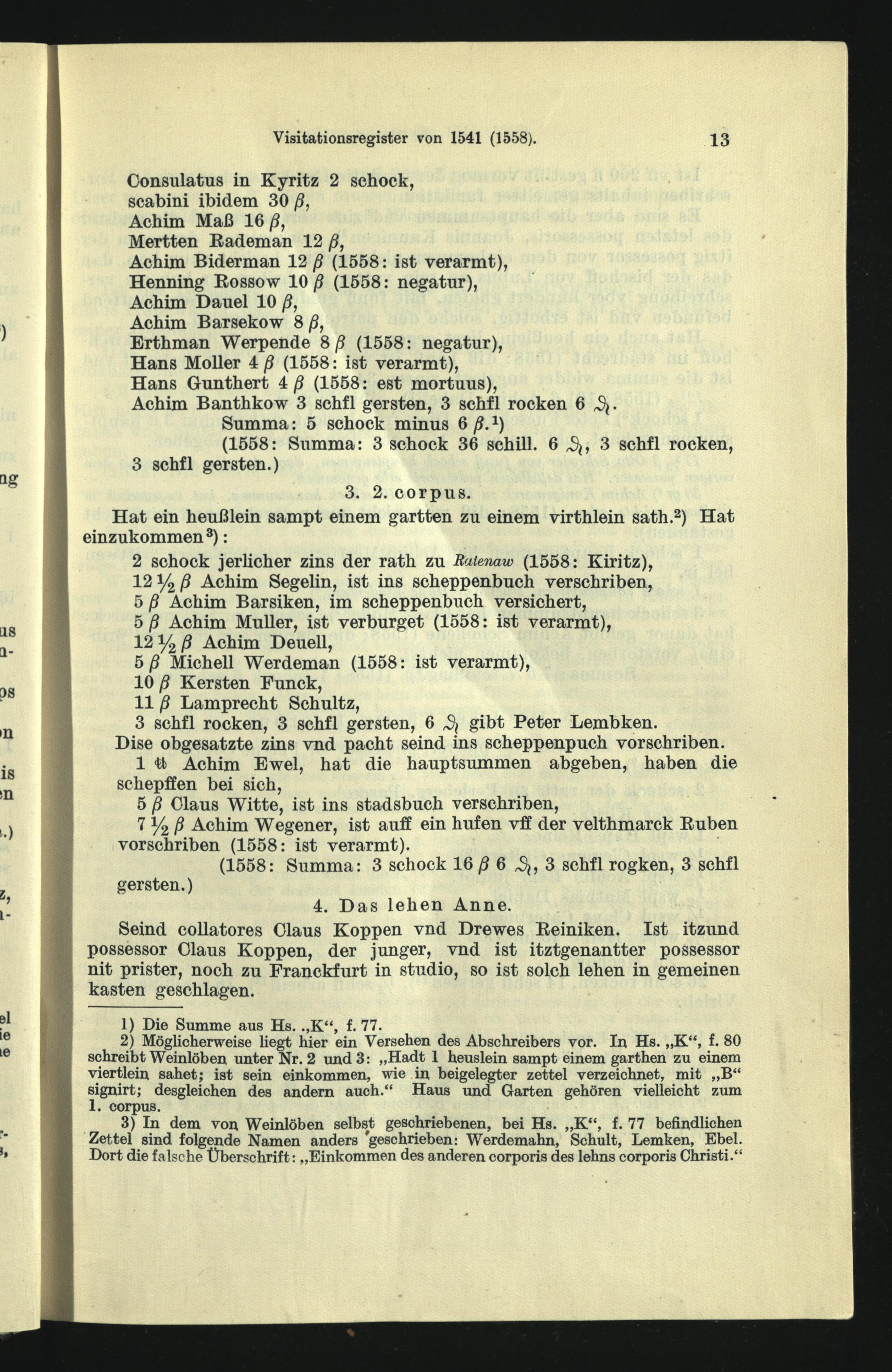 Visitationsregister vom Juli 1541, ergänzt 1558.