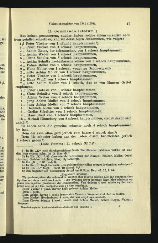 Visitationsregister vom Juli 1541, ergänzt 1558.