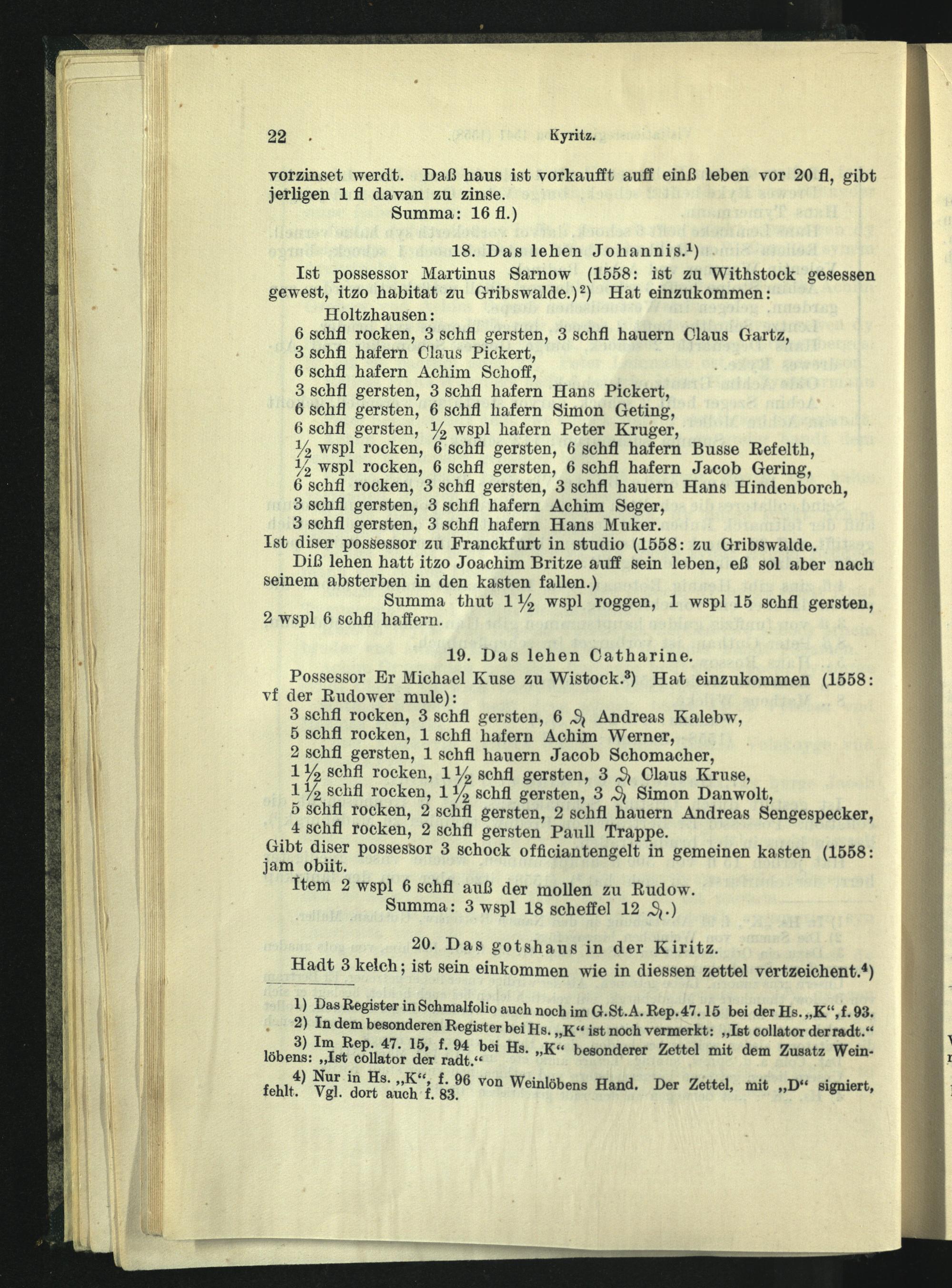 Visitationsregister vom Juli 1541, ergänzt 1558.