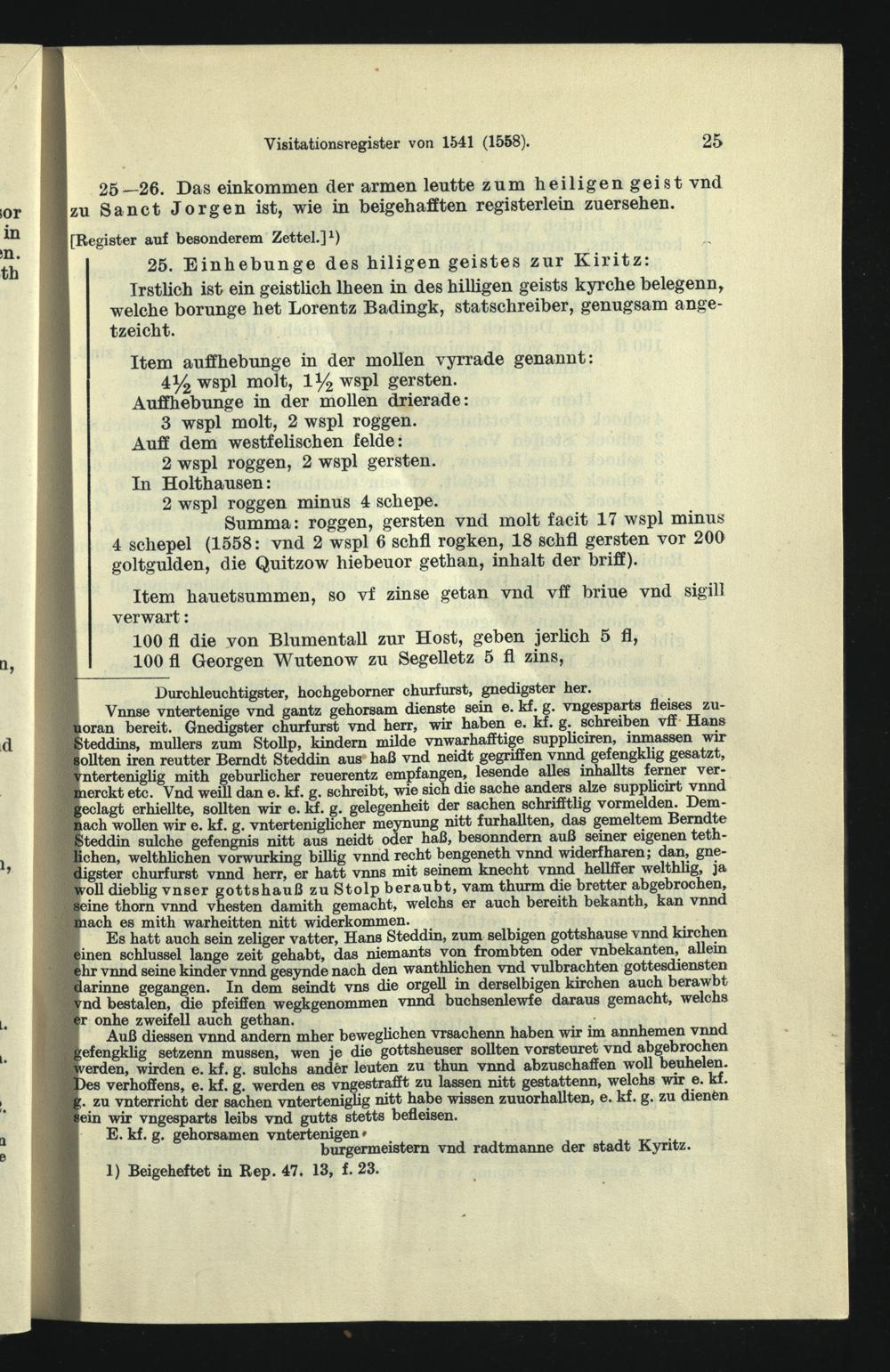 Visitationsregister vom Juli 1541, ergänzt 1558.