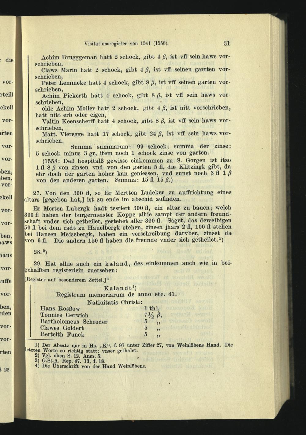 Visitationsregister vom Juli 1541, ergänzt 1558.