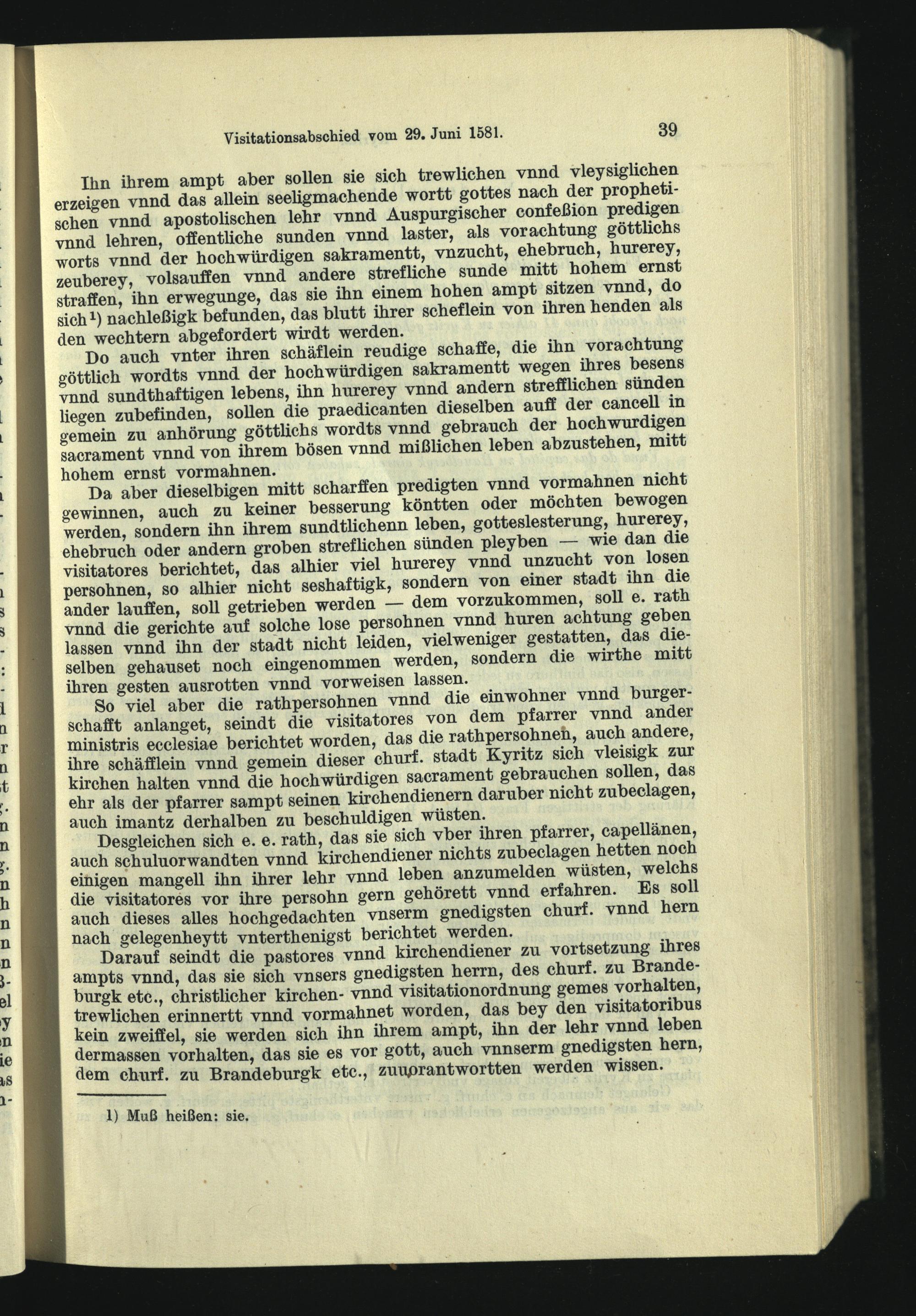 II. Die Generalvisitation vom Juni 1581.
