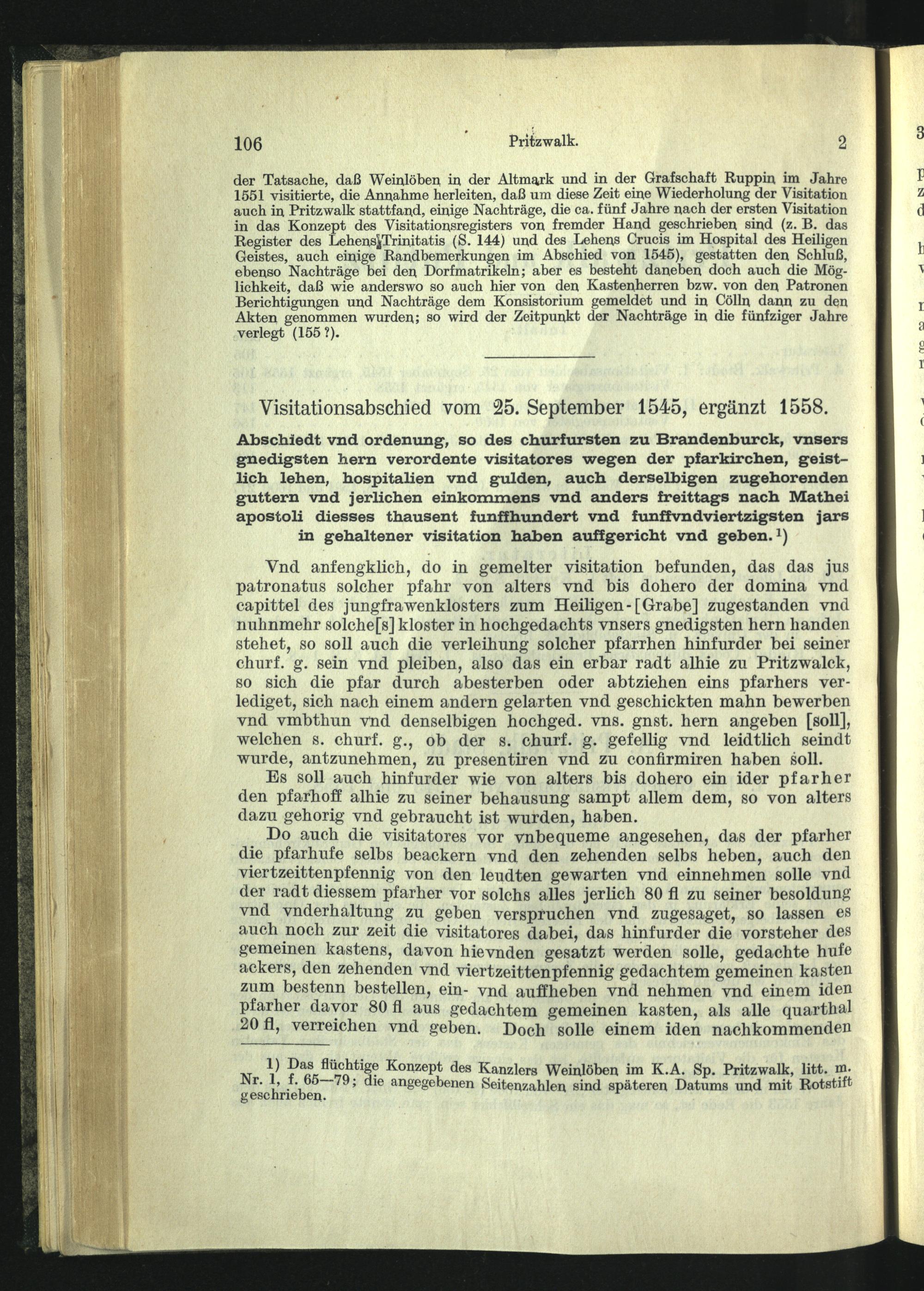 Visitationsabschied vom 25. September 1545, ergänzt 1558.