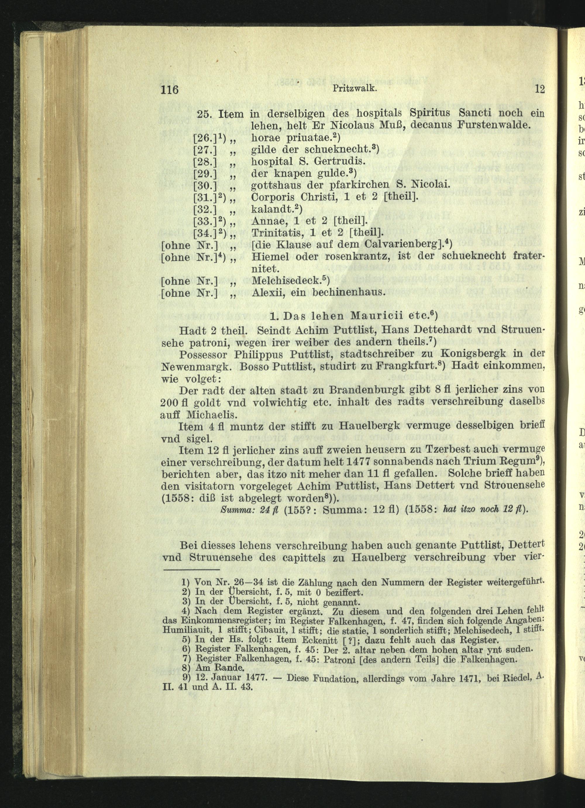 Visitationsregister vom September 1545, ergänzt 1558.