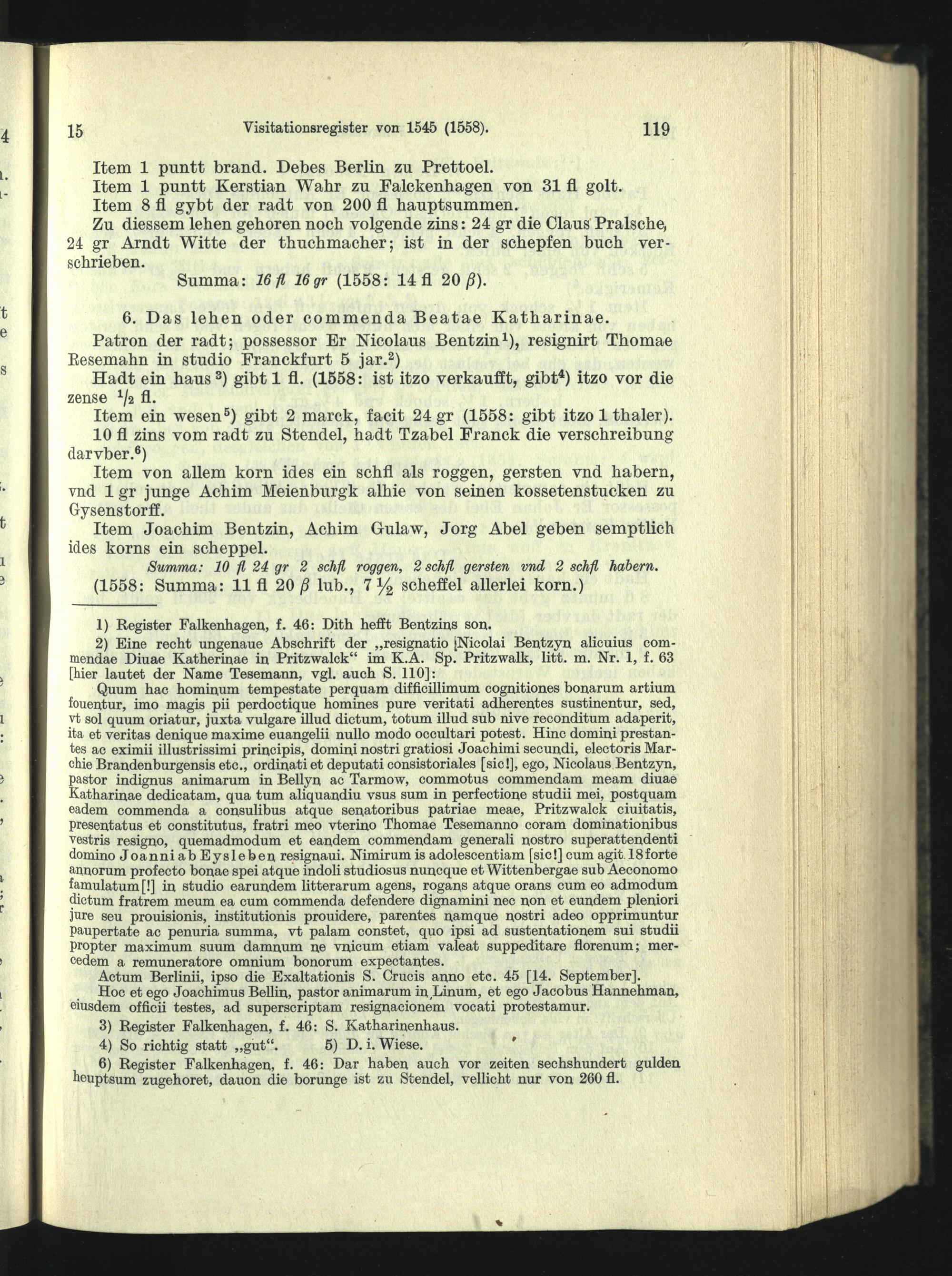 Visitationsregister vom September 1545, ergänzt 1558.