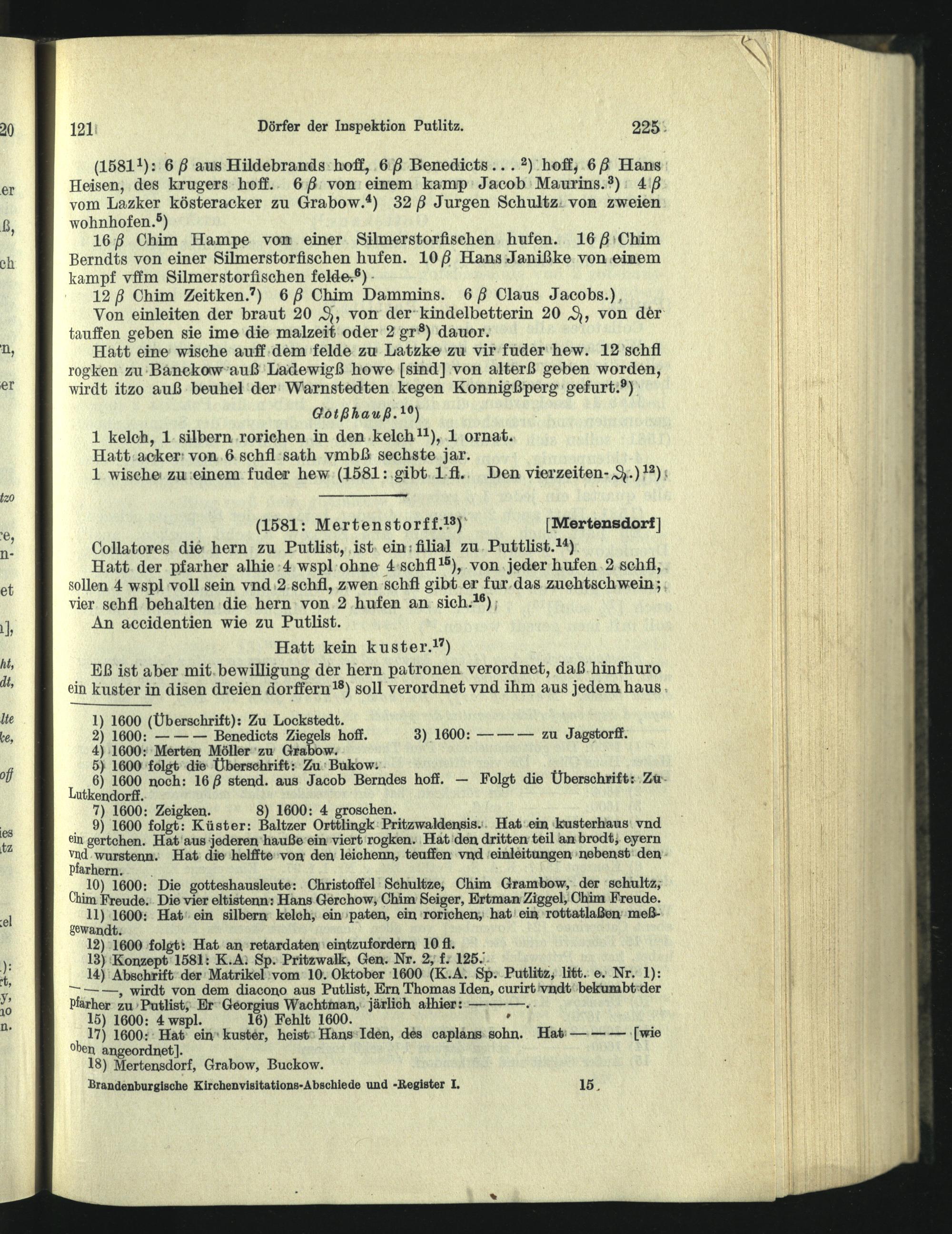 Dörfer der Inspektion Putlitz: Matrikeln aus den Jahren 154?, 1558, 1581 und 160...