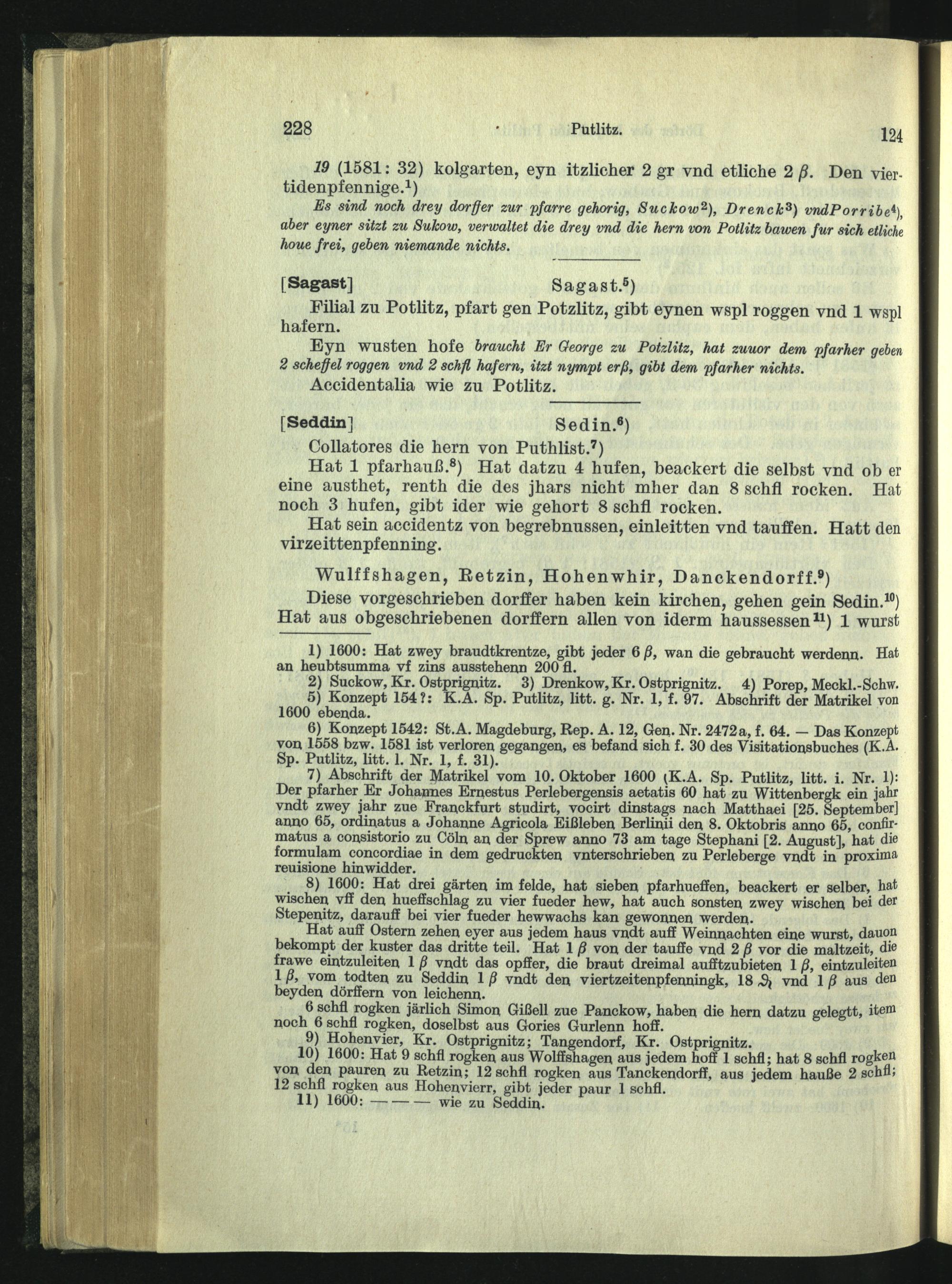 Dörfer der Inspektion Putlitz: Matrikeln aus den Jahren 154?, 1558, 1581 und 160...