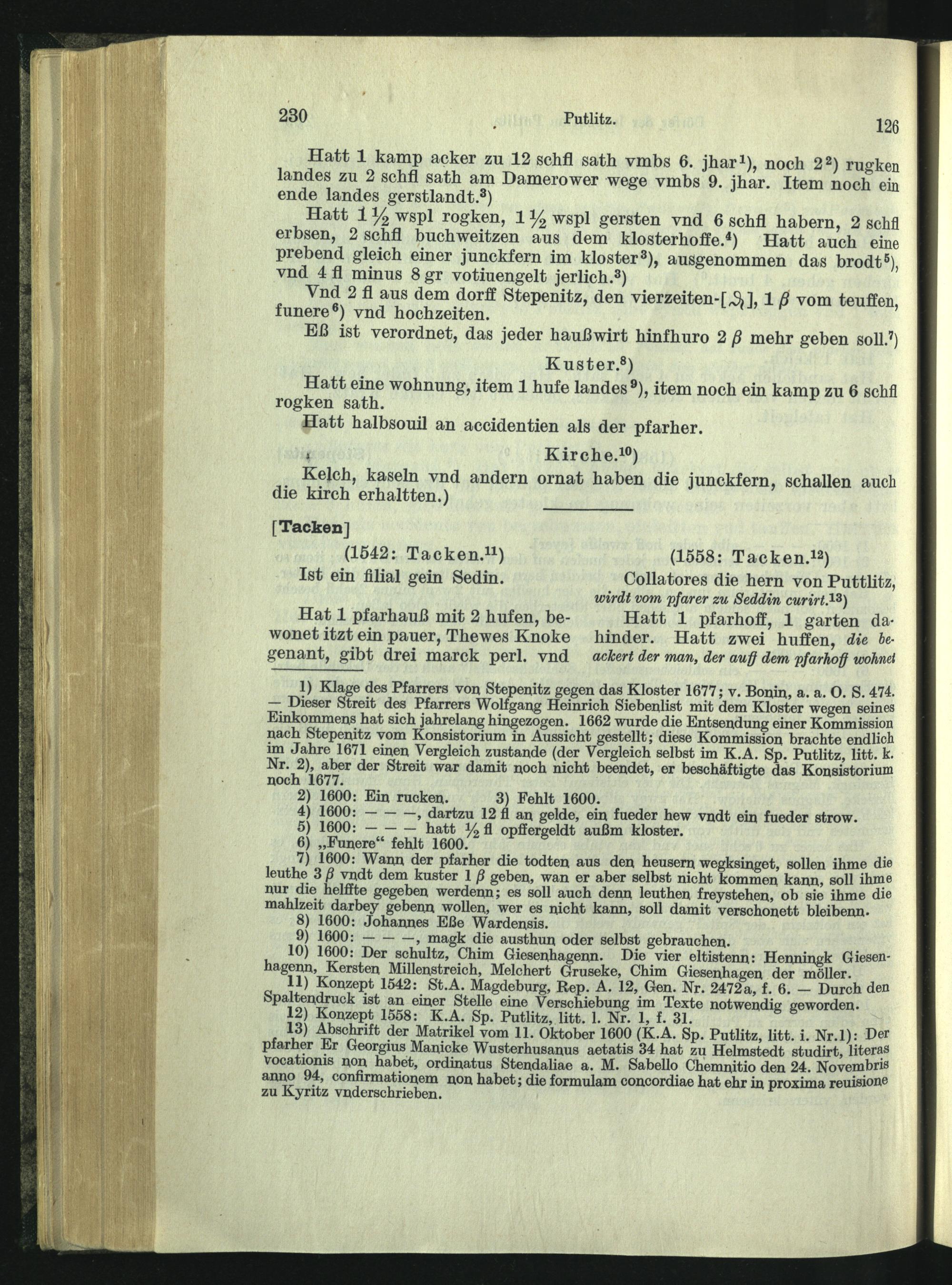 Dörfer der Inspektion Putlitz: Matrikeln aus den Jahren 154?, 1558, 1581 und 160...