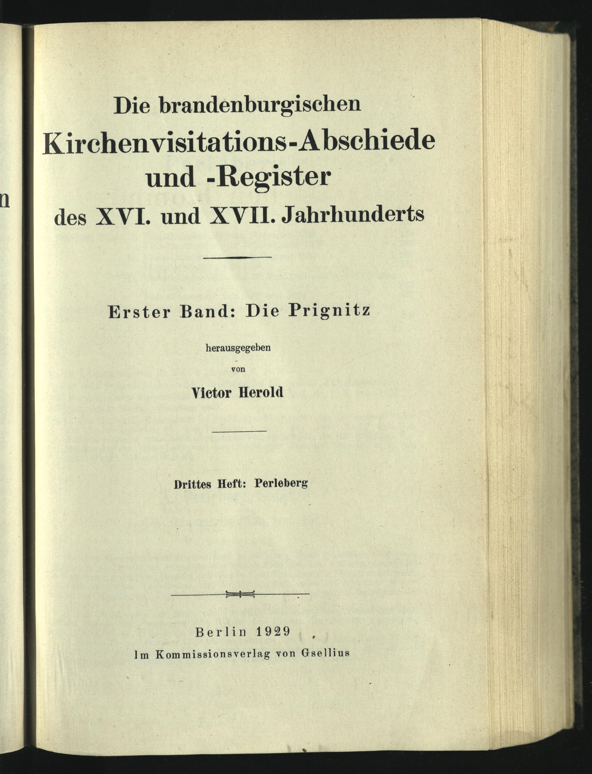 Bd. 1 (1931) Die Prignitz / hrsg. von Victor Herold
