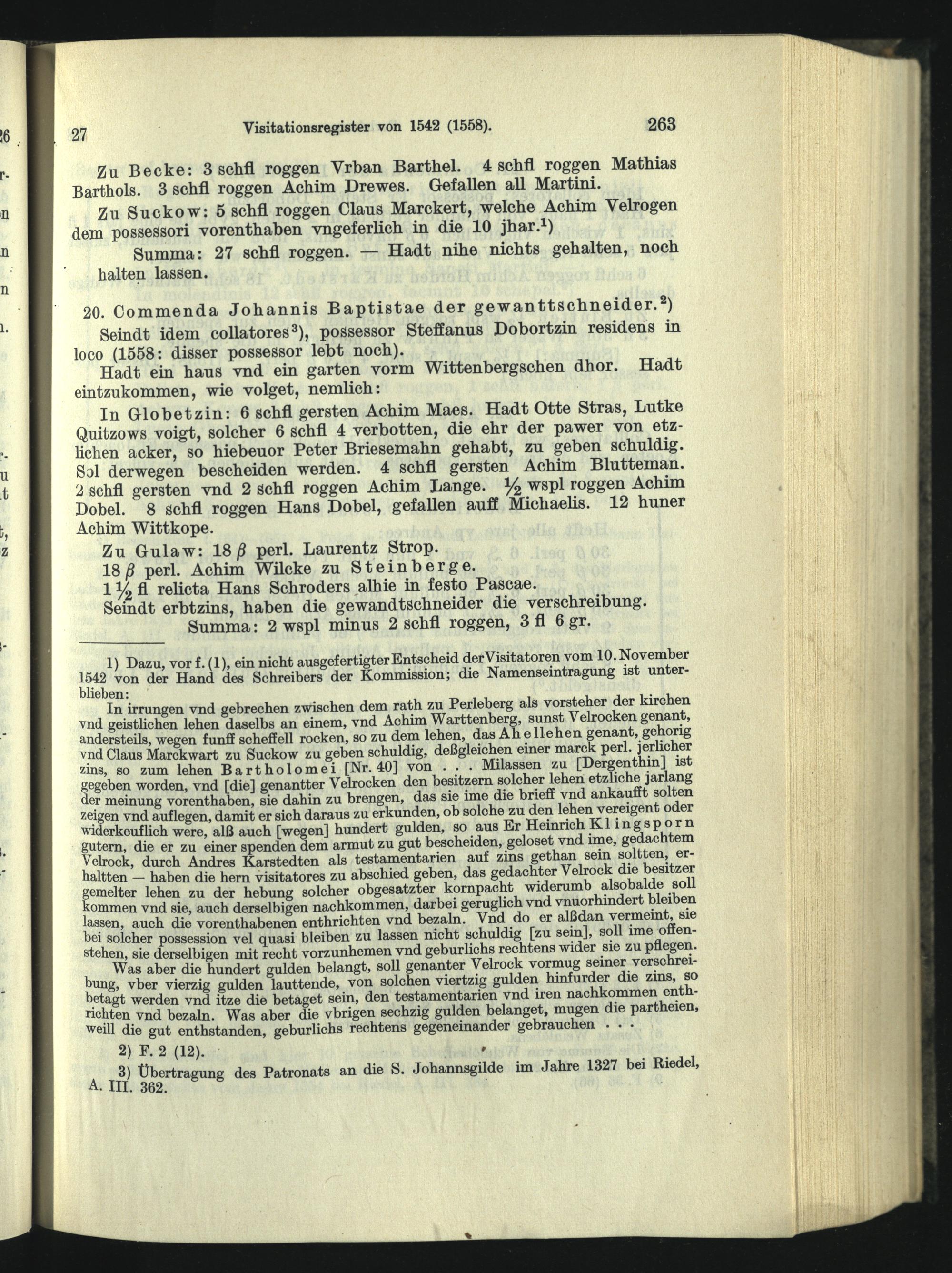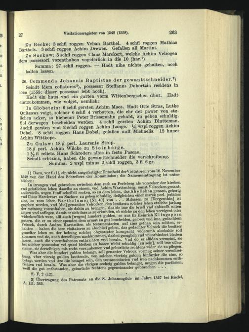Visitationsregister vom November 1542, ergänzt 1558.