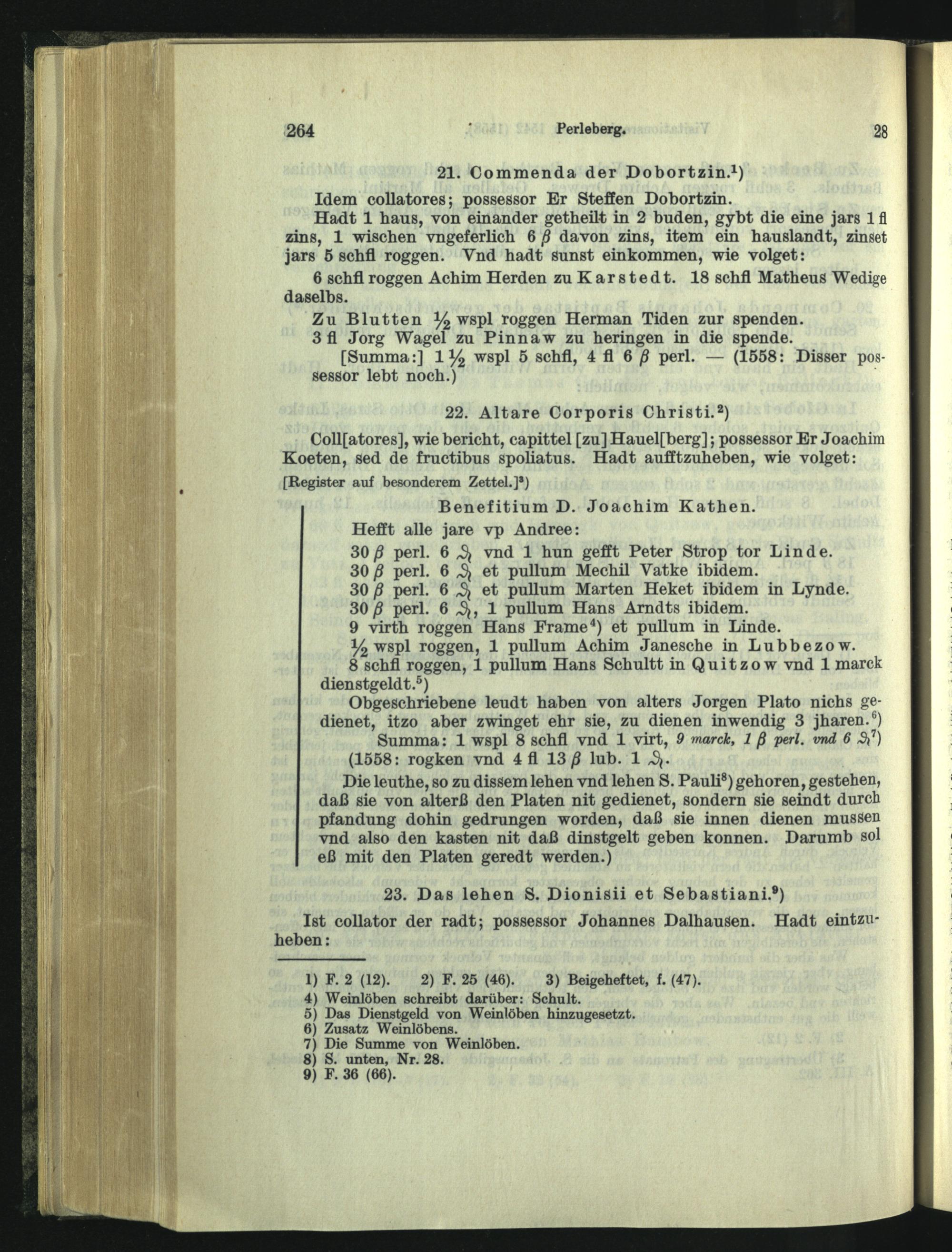 Visitationsregister vom November 1542, ergänzt 1558.