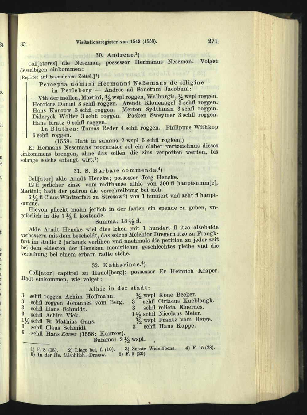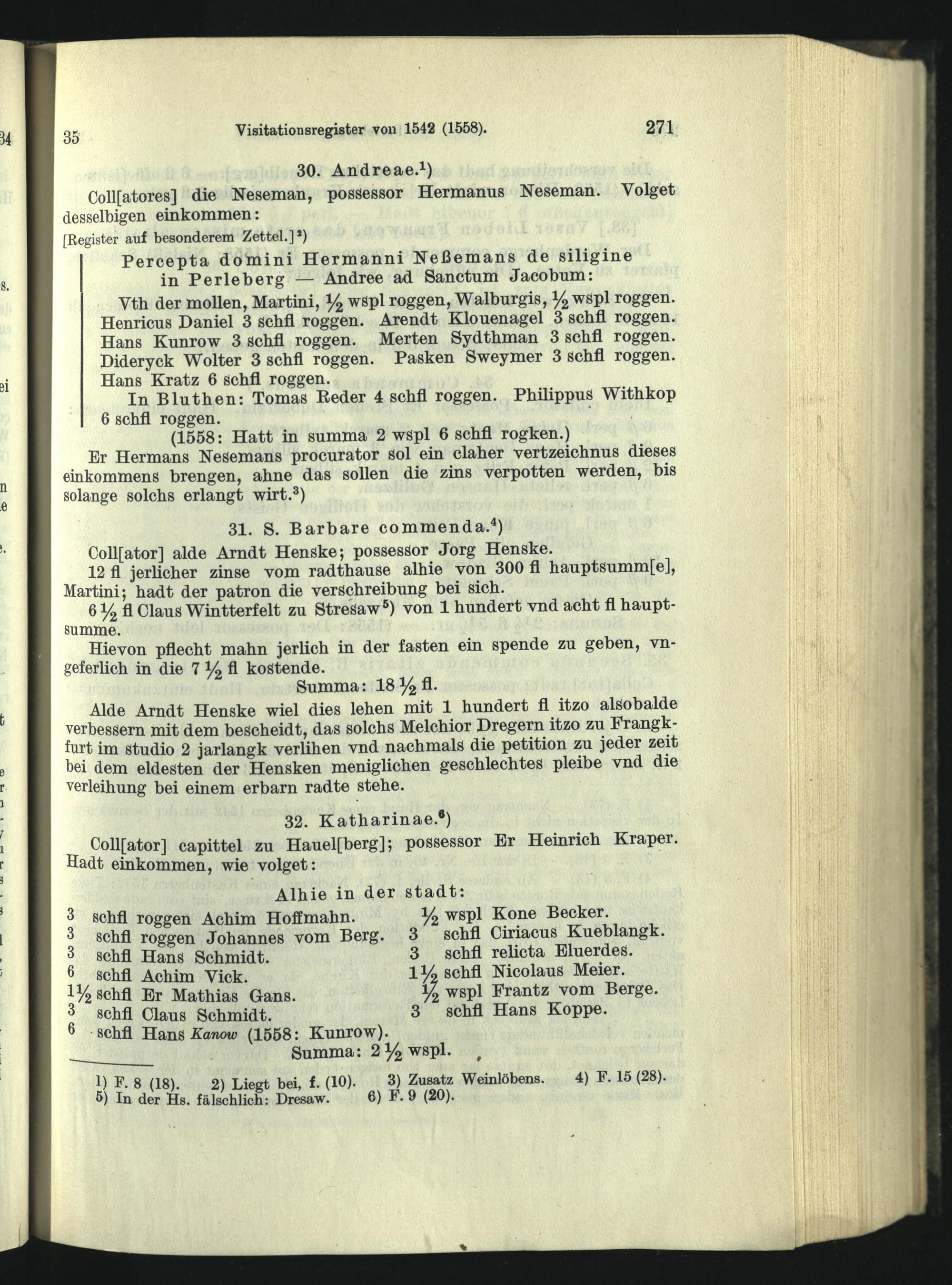 Visitationsregister vom November 1542, ergänzt 1558.