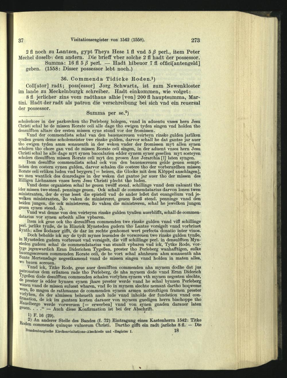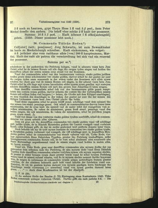 Visitationsregister vom November 1542, ergänzt 1558.