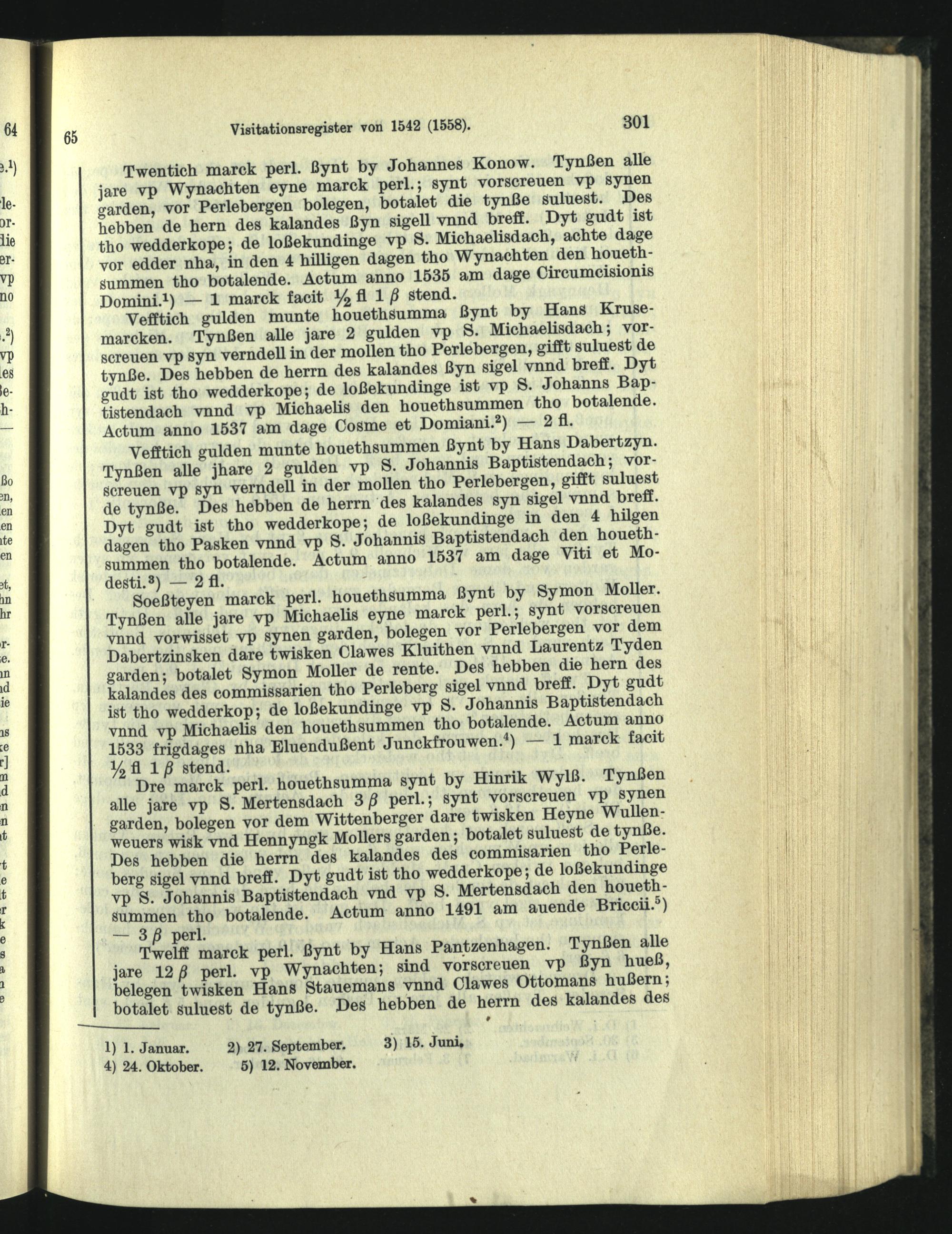 Visitationsregister vom November 1542, ergänzt 1558.