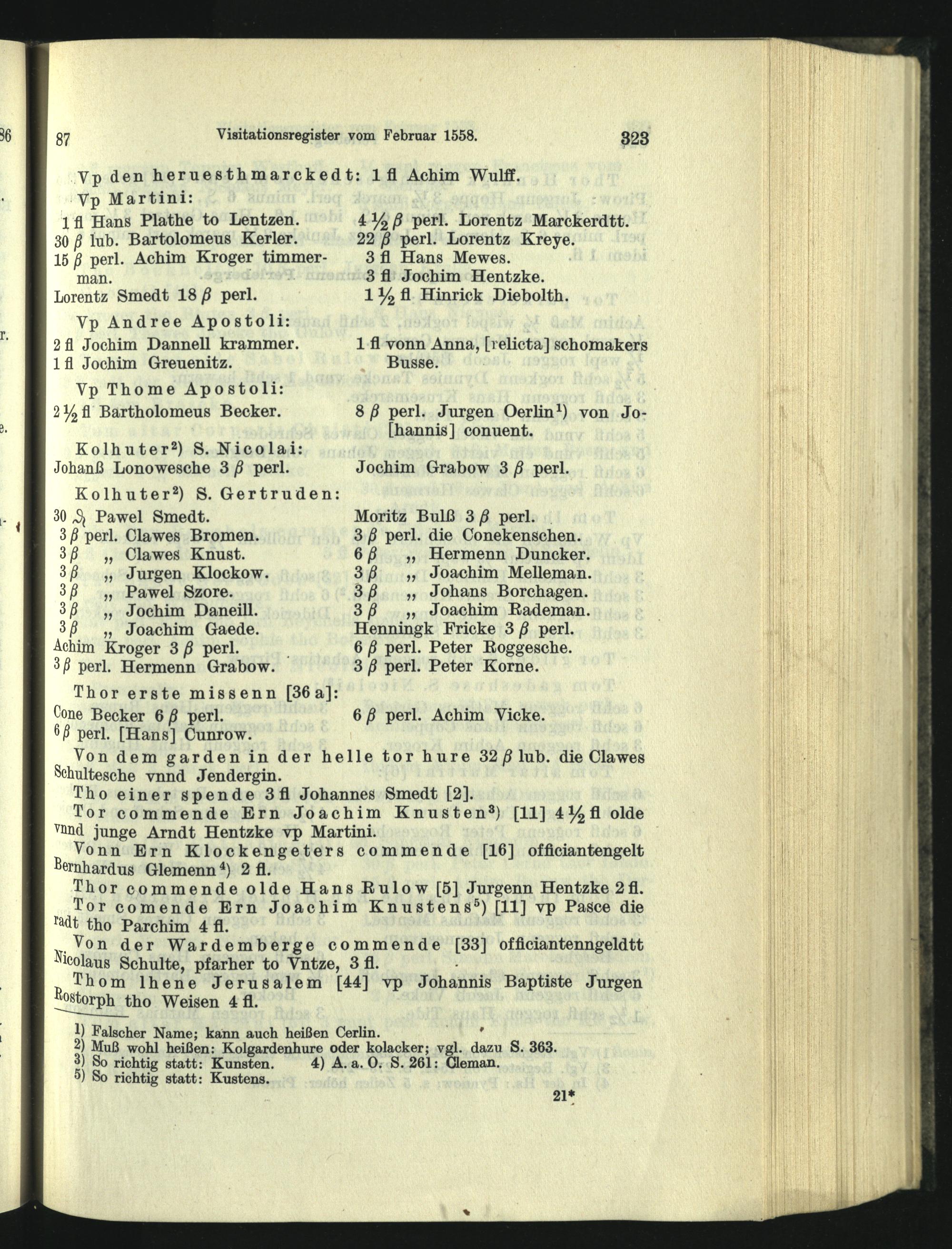 Visitationsregister vom Februar 1558.