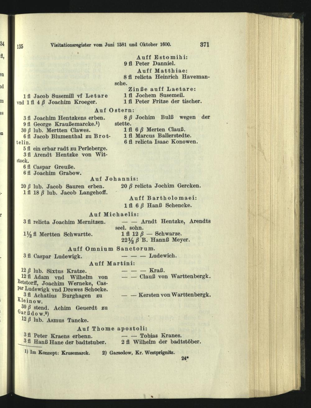 Visitationsregister vom Juni 1581 und Oktober 1600.