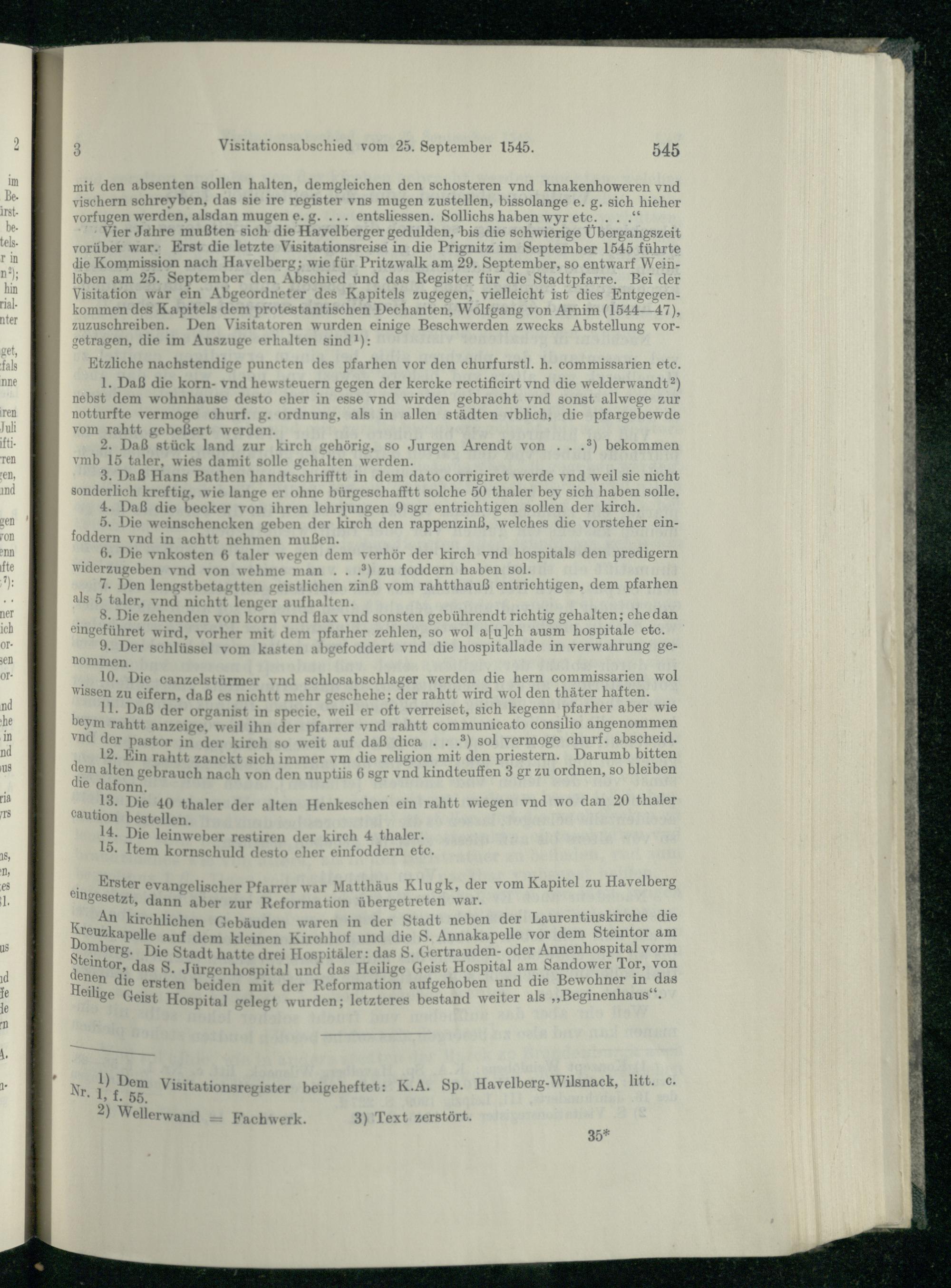 I. Die Generalvisitation von 1545.