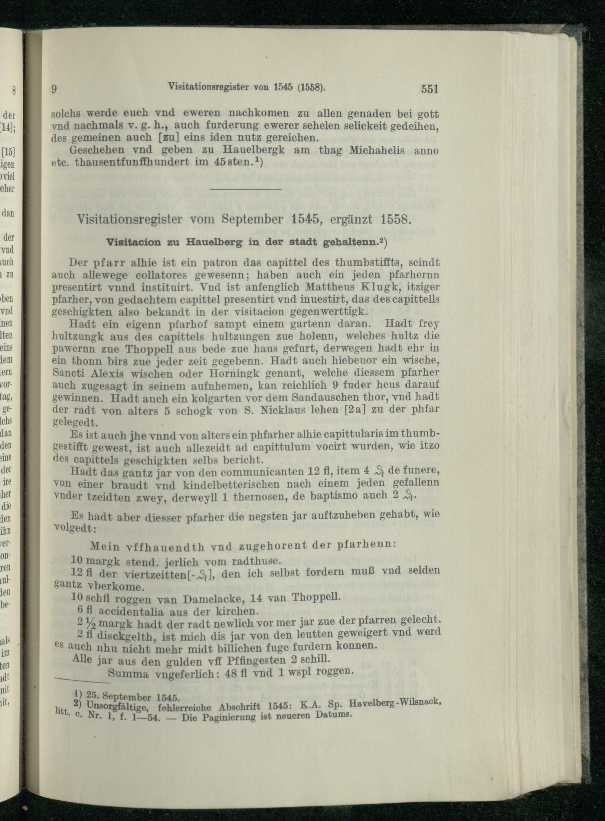 Visitationsregister vom September 1545, ergänzt 1558.