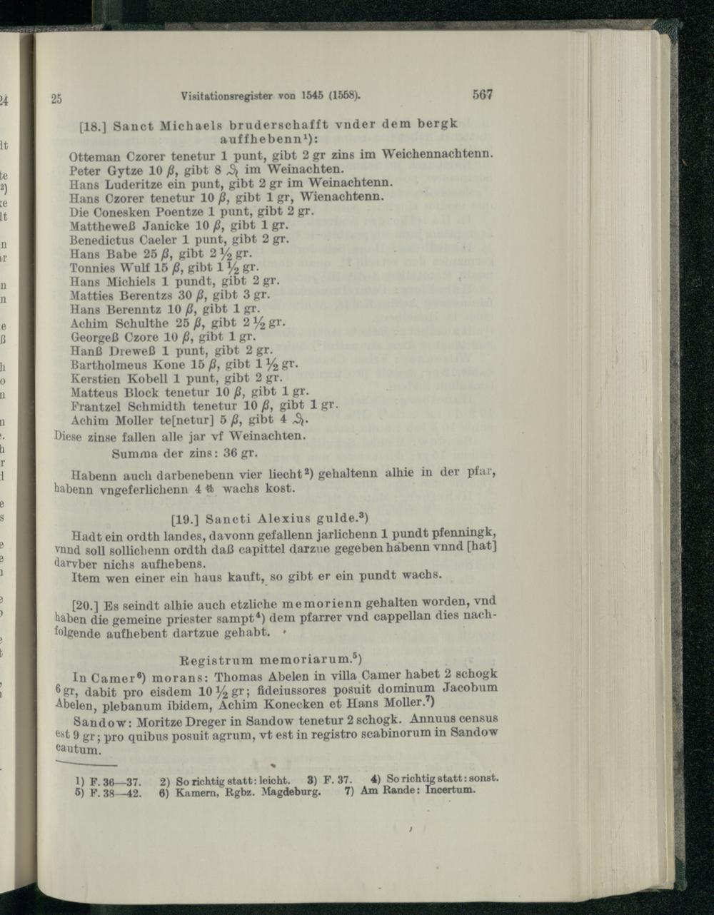 Visitationsregister vom September 1545, ergänzt 1558.