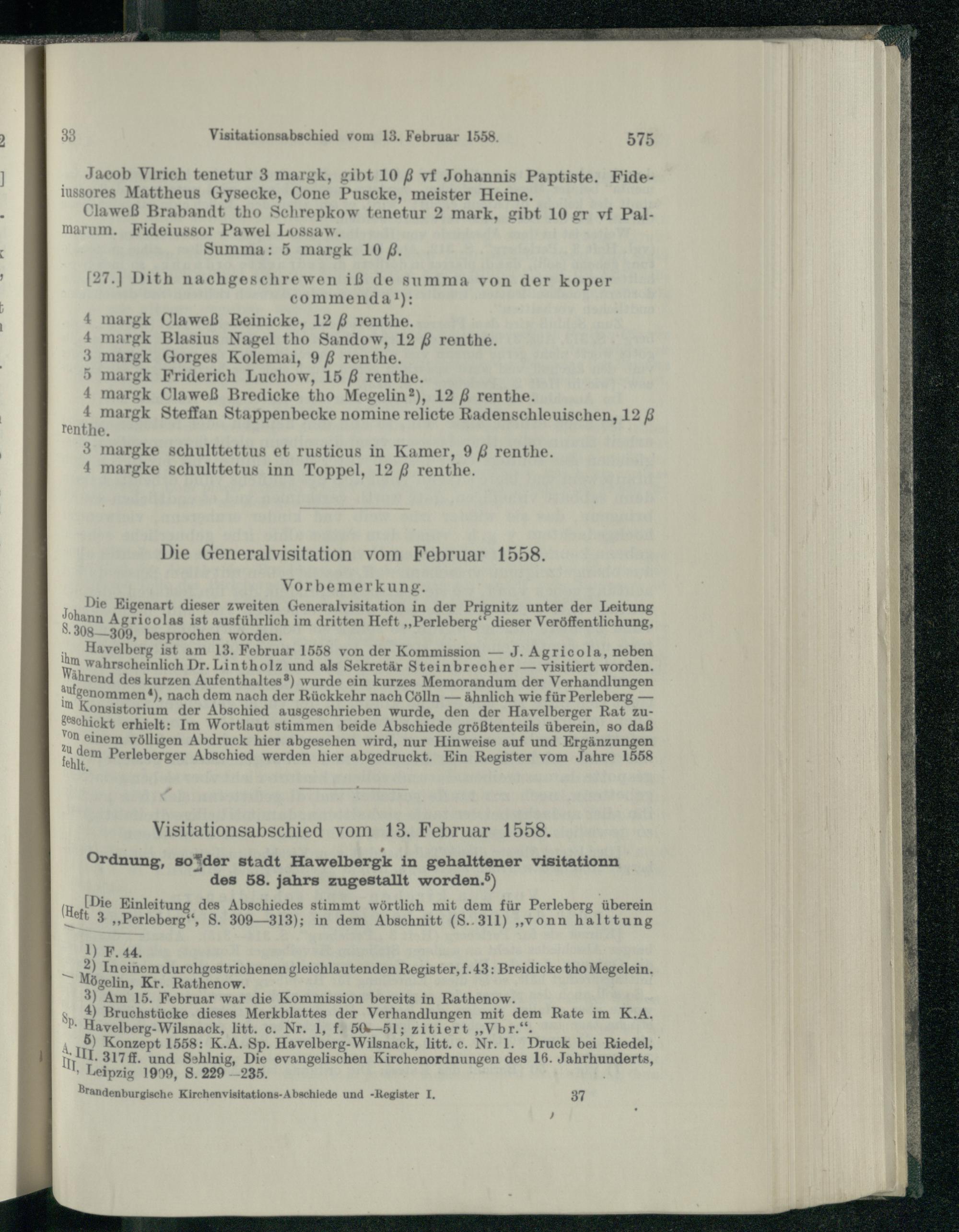 Die brandenburgischen Kirchenvisitations-Abschiede und -Register des XVI. und XVII....