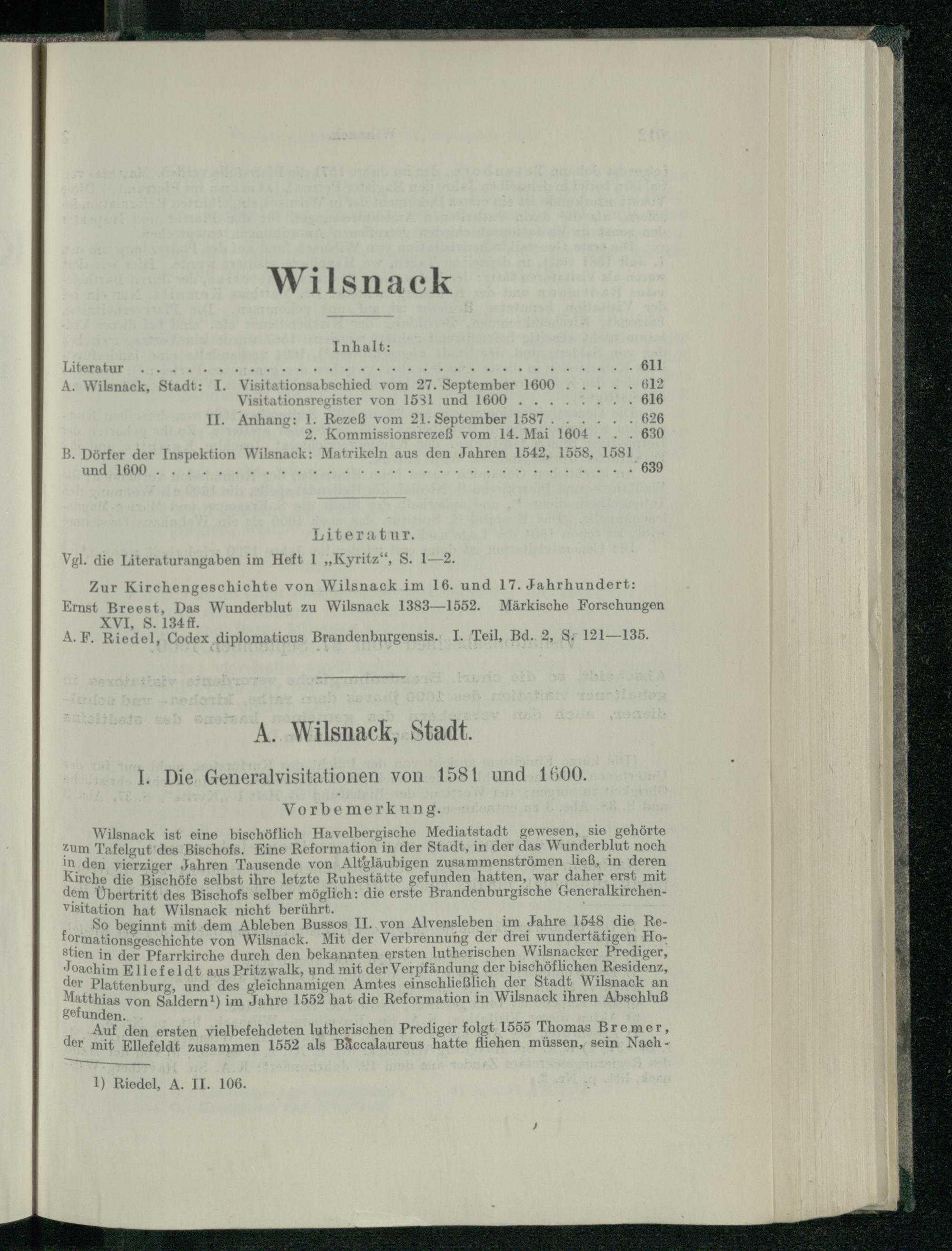 I. Die Generalvisitationen von 1581 und 1600.