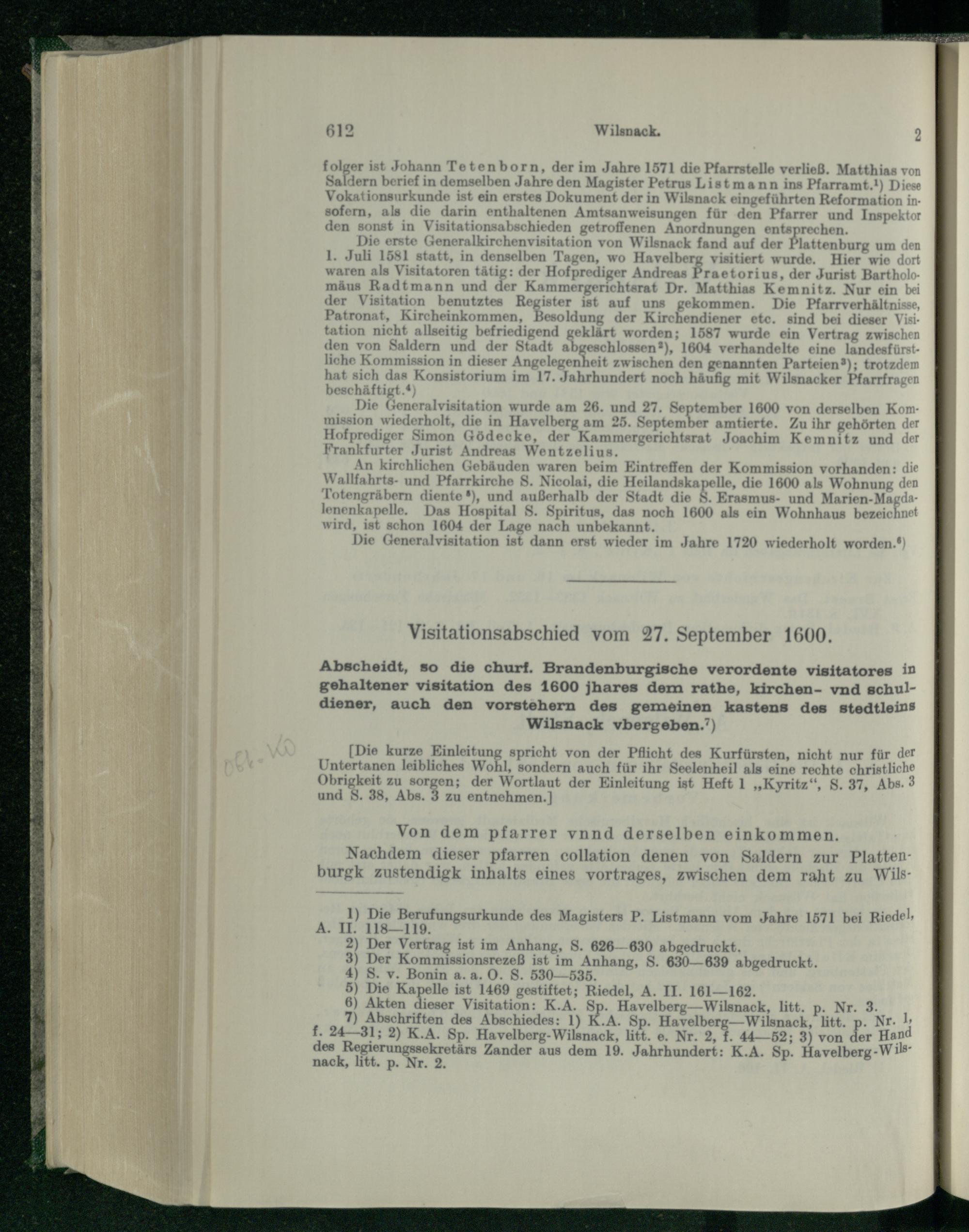 I. Die Generalvisitationen von 1581 und 1600.