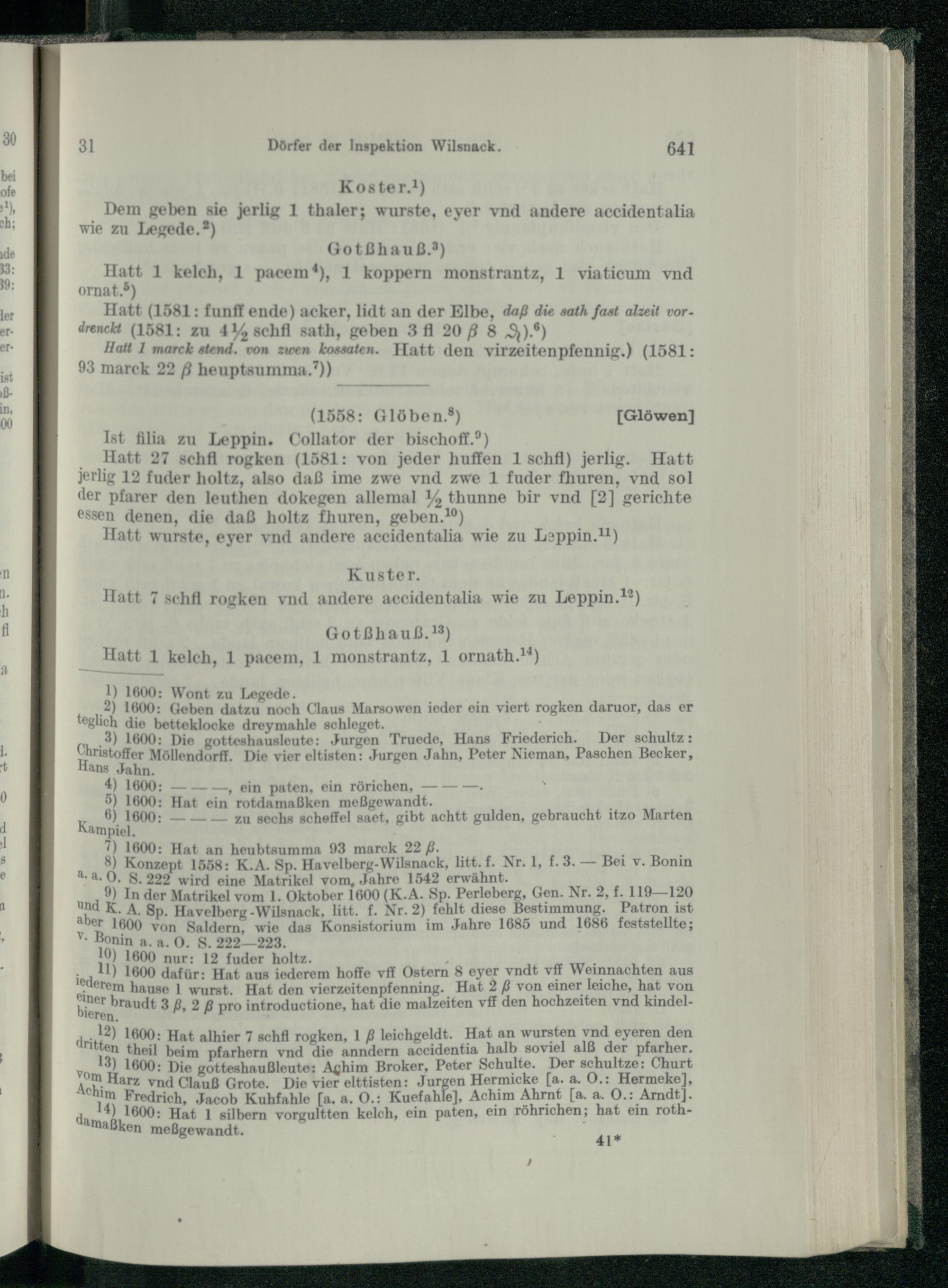 B. Dörfer der Inspektion Wilsnack.