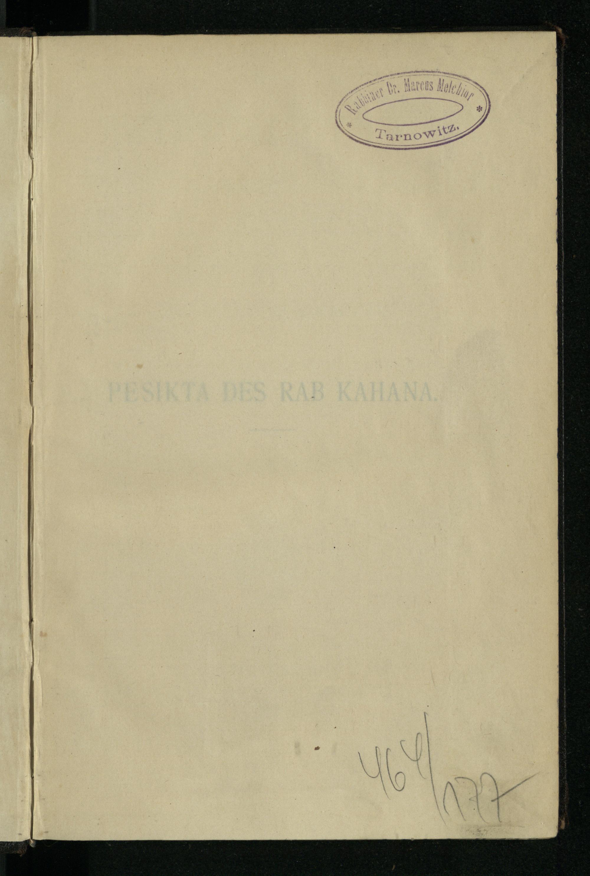 Pesikta des Rab Kahana : das ist die älteste in Palästina redigirte Haggada ; nach der Buberschen Textausgabe / zum ersten Male ins Dt. übertr. und mit Einl. und Noten vers. von Aug. Wünsche