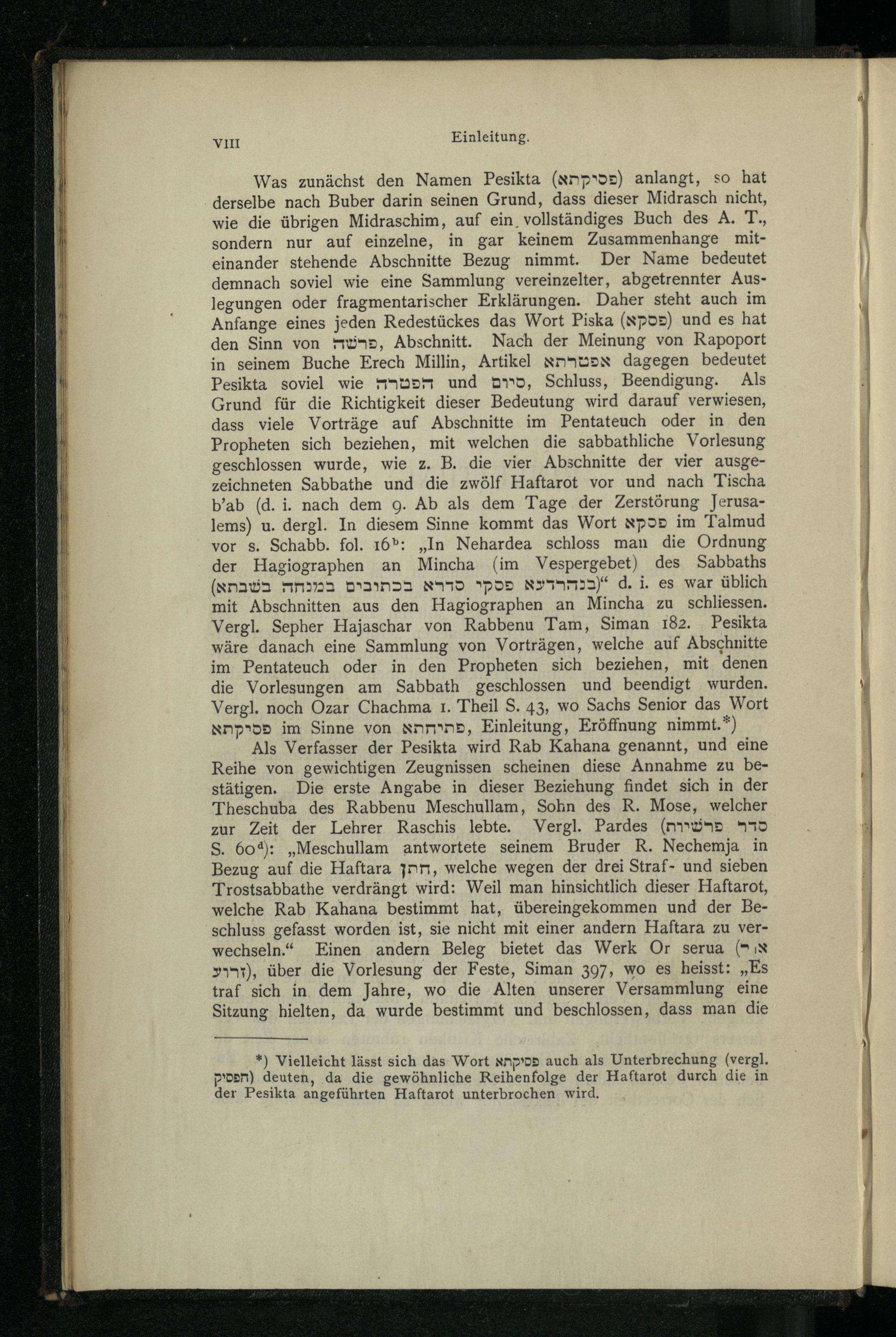 Pesikta des Rab Kahana : das ist die älteste in Palästina redigirte Haggada ; nach der Buberschen Textausgabe / zum ersten Male ins Dt. übertr. und mit Einl. und Noten vers. von Aug. Wünsche