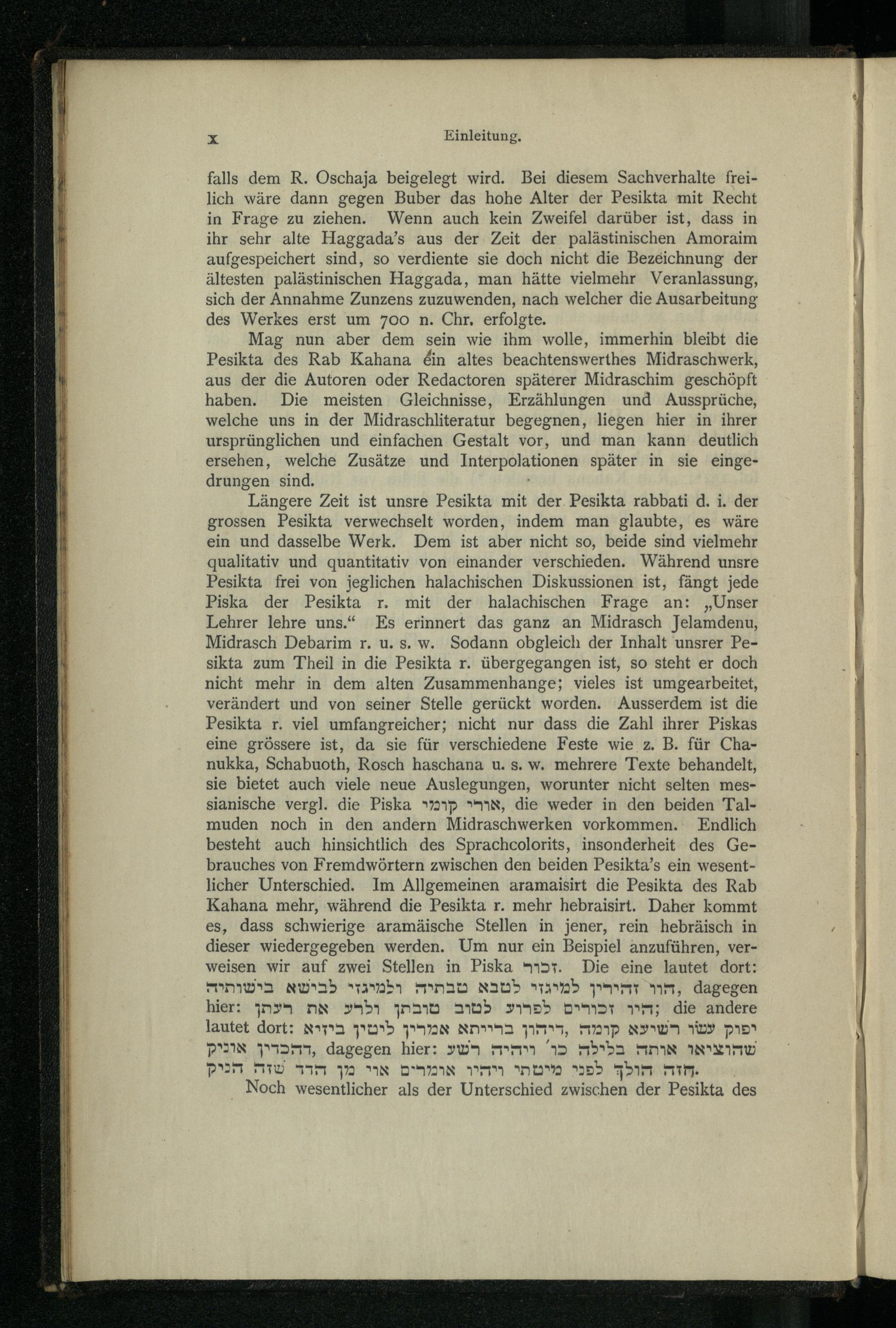 Pesikta des Rab Kahana : das ist die älteste in Palästina redigirte Haggada ; nach der Buberschen Textausgabe / zum ersten Male ins Dt. übertr. und mit Einl. und Noten vers. von Aug. Wünsche