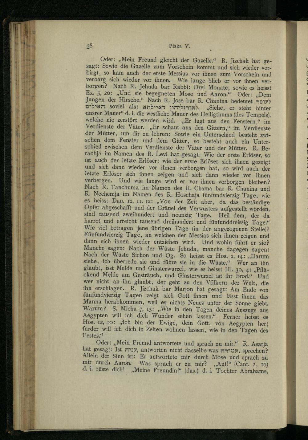 Pesikta des Rab Kahana : das ist die älteste in Palästina redigirte Haggada ; nach der Buberschen Textausgabe / zum ersten Male ins Dt. übertr. und mit Einl. und Noten vers. von Aug. Wünsche