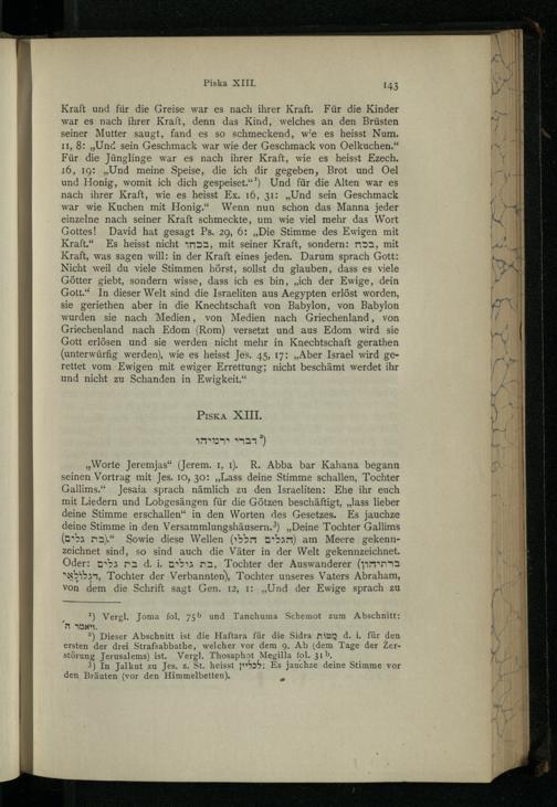 Pesikta des Rab Kahana : das ist die älteste in Palästina redigirte Haggada ; nach der Buberschen Textausgabe / zum ersten Male ins Dt. übertr. und mit Einl. und Noten vers. von Aug. Wünsche