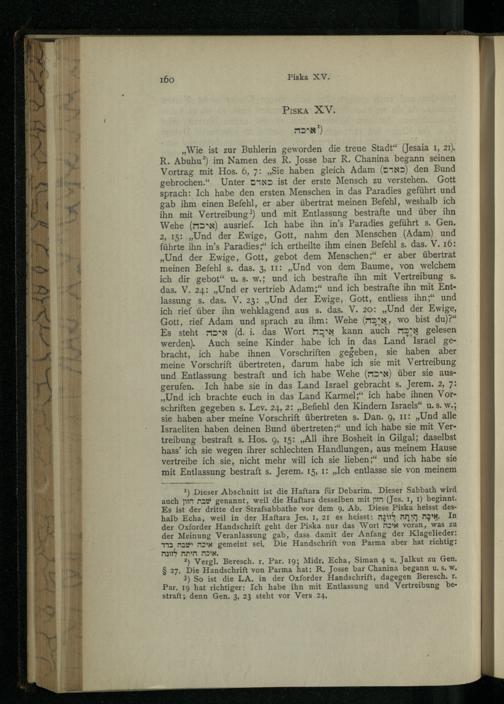 Pesikta des Rab Kahana : das ist die älteste in Palästina redigirte Haggada ; nach der Buberschen Textausgabe / zum ersten Male ins Dt. übertr. und mit Einl. und Noten vers. von Aug. Wünsche
