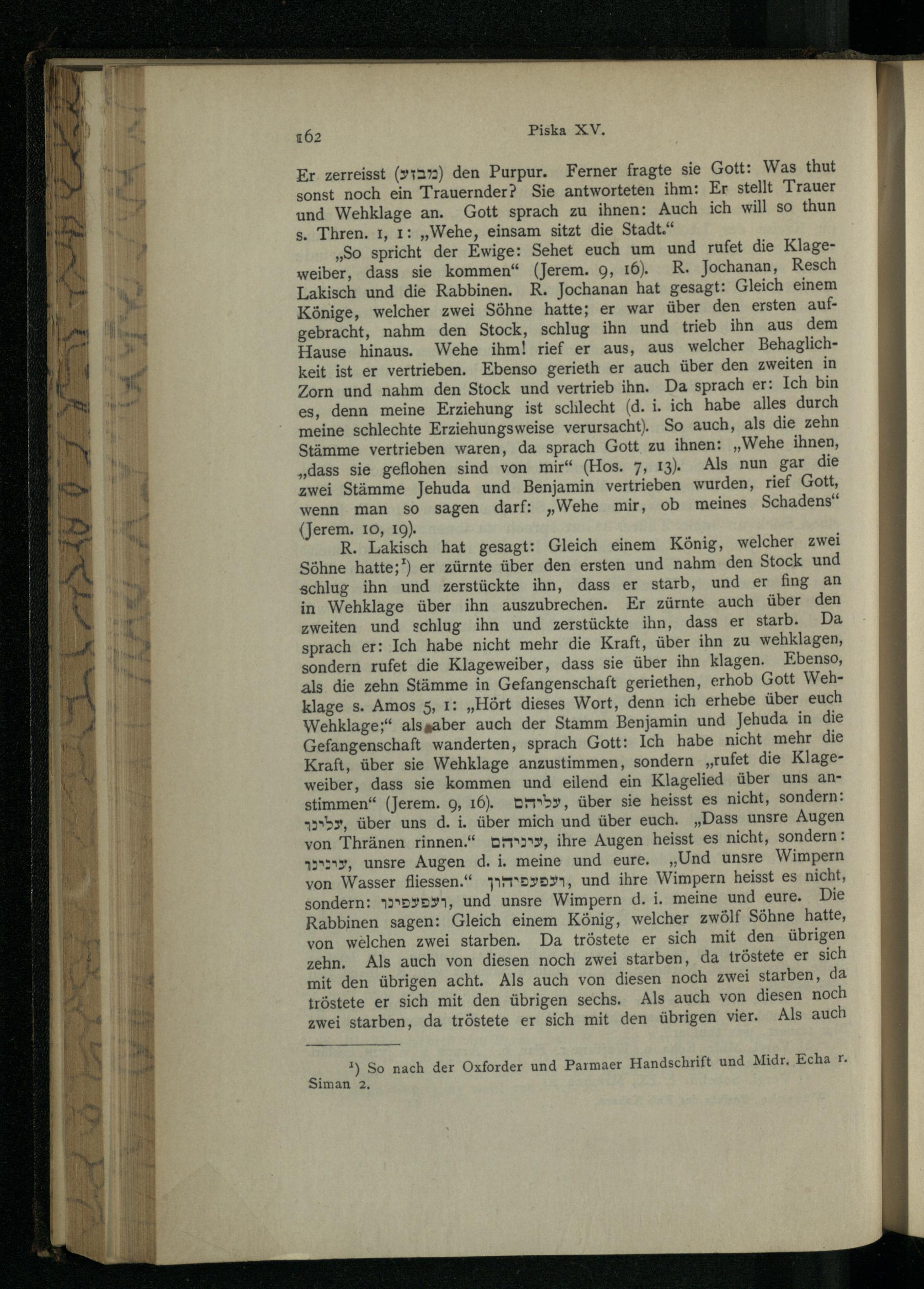 Pesikta des Rab Kahana : das ist die älteste in Palästina redigirte Haggada ; nach der Buberschen Textausgabe / zum ersten Male ins Dt. übertr. und mit Einl. und Noten vers. von Aug. Wünsche