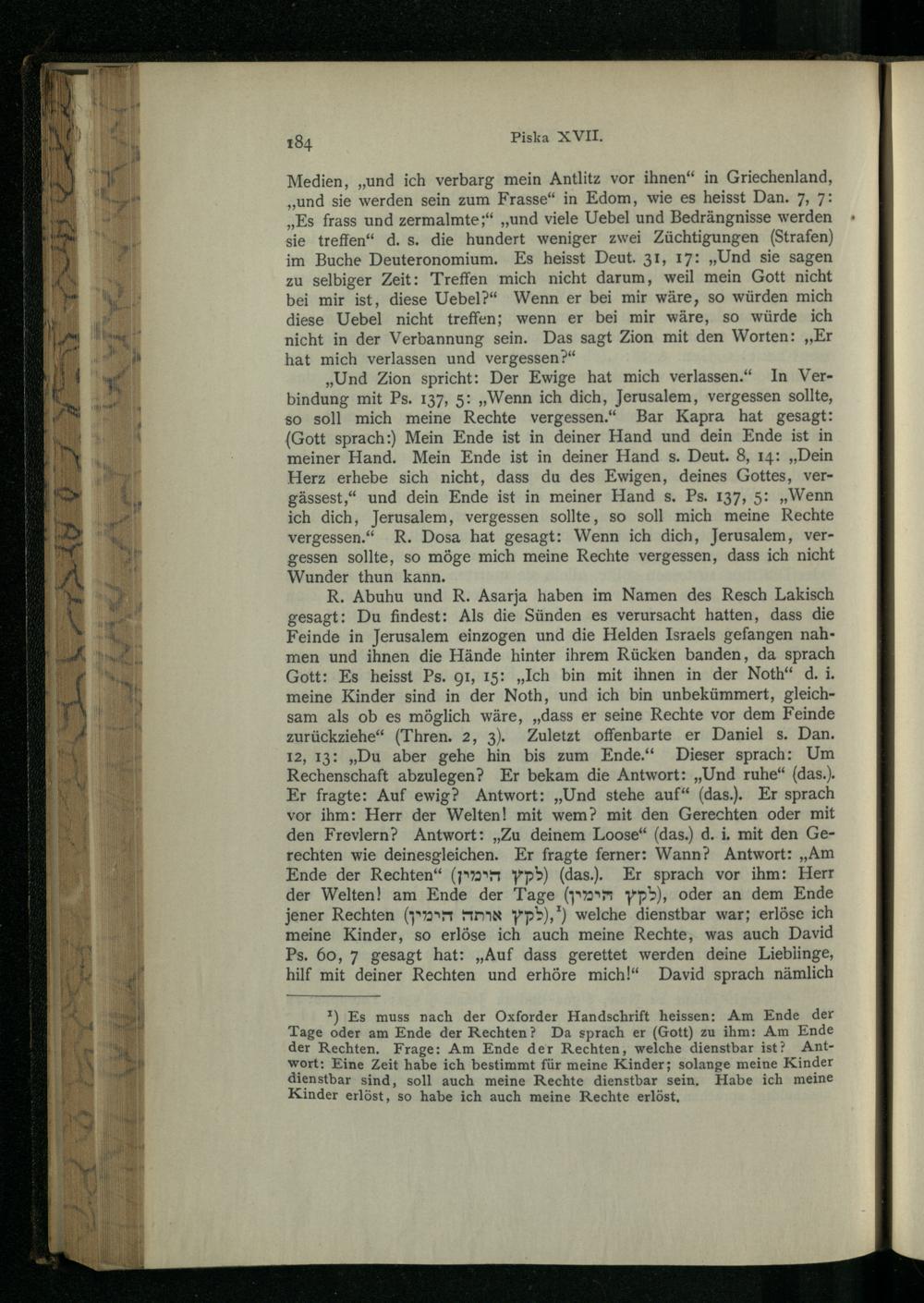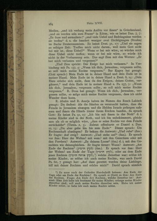 Pesikta des Rab Kahana : das ist die älteste in Palästina redigirte Haggada ; nach der Buberschen Textausgabe / zum ersten Male ins Dt. übertr. und mit Einl. und Noten vers. von Aug. Wünsche