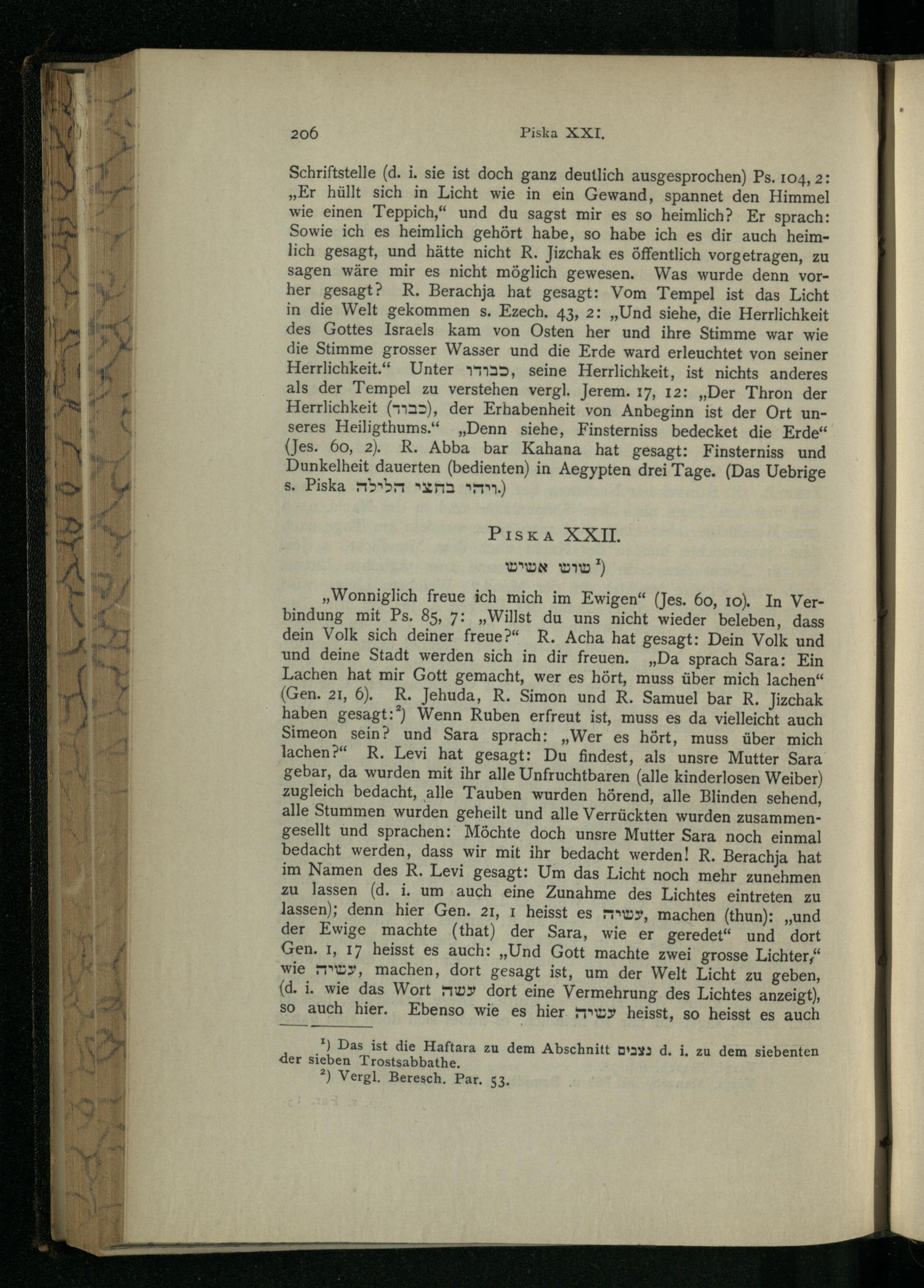 Pesikta des Rab Kahana : das ist die älteste in Palästina redigirte Haggada ; nach der Buberschen Textausgabe / zum ersten Male ins Dt. übertr. und mit Einl. und Noten vers. von Aug. Wünsche