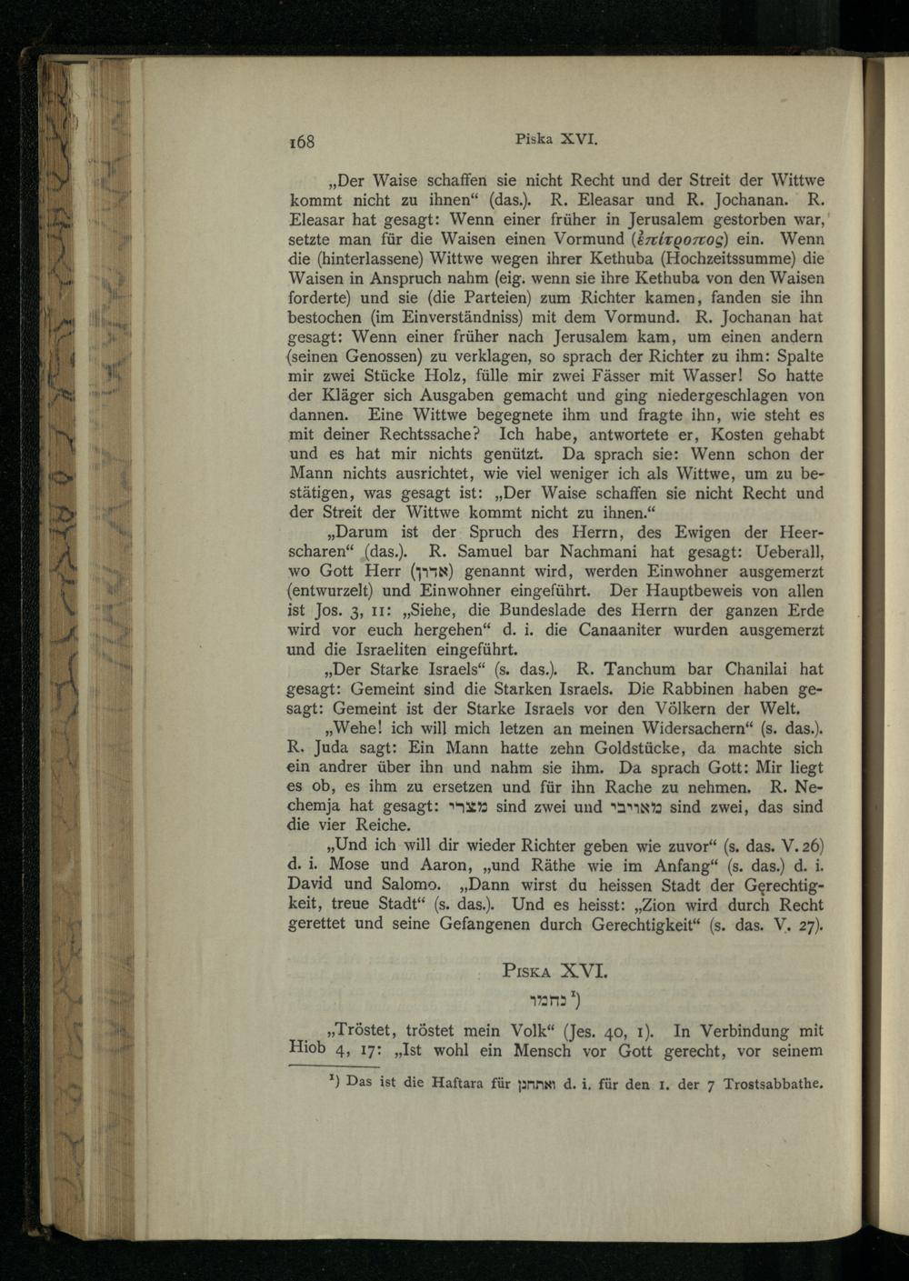 Pesikta des Rab Kahana : das ist die älteste in Palästina redigirte Haggada ; nach der Buberschen Textausgabe / zum ersten Male ins Dt. übertr. und mit Einl. und Noten vers. von Aug. Wünsche