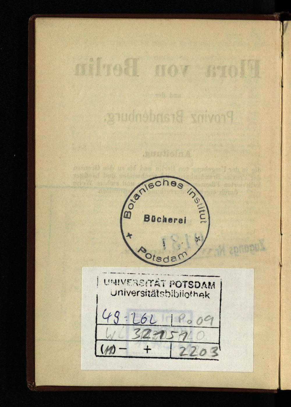 Flora von Berlin und der Provinz Brandenburg : Anleitung, die in der Umgebung von Berlin und bis zu den Grenzen der Provinz Brandenburg wild wachsenden und häufiger kultivierten Pflanzen auf eine leichte und sichere Weise durch eigene Untersuchung zu bestimmen / bearb. von W. Lackowitz