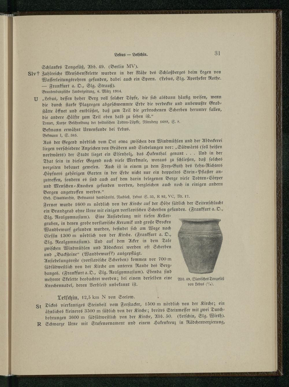 Bd. 6, Teil 1, Beih. (1920) Die vor- und frühgeschichtlichen Denkmäler des Kreises Lebus / unter der Schriftl. des Erich Blunck bearb. von Alfred Götze