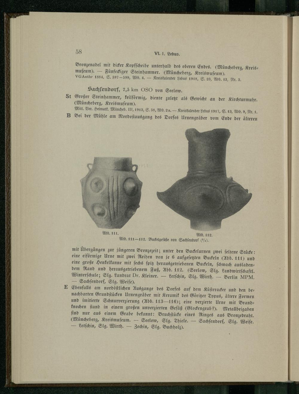 Bd. 6, Teil 1, Beih. (1920) Die vor- und frühgeschichtlichen Denkmäler des Kreises Lebus / unter der Schriftl. des Erich Blunck bearb. von Alfred Götze